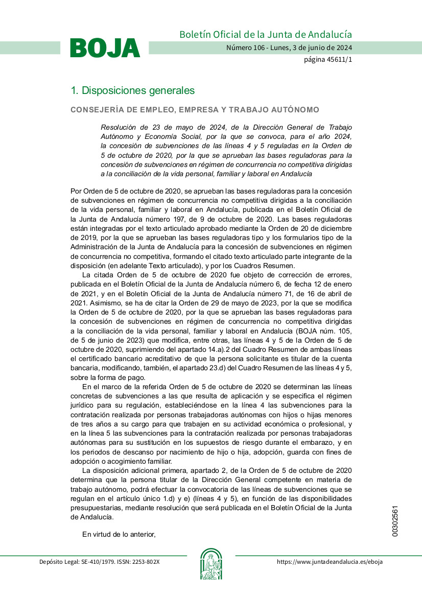 El Ayuntamiento de Benacazón informa de la presente convocatoria, la cual se rige de 5 de octubre de 2020, por la que se aprueban las bases reguladoras para la concesión de subvenciones en régimen de concurrencia no competitiva dirigidas a la conciliación de la vida personal, familiar y laboral en Andalucía.