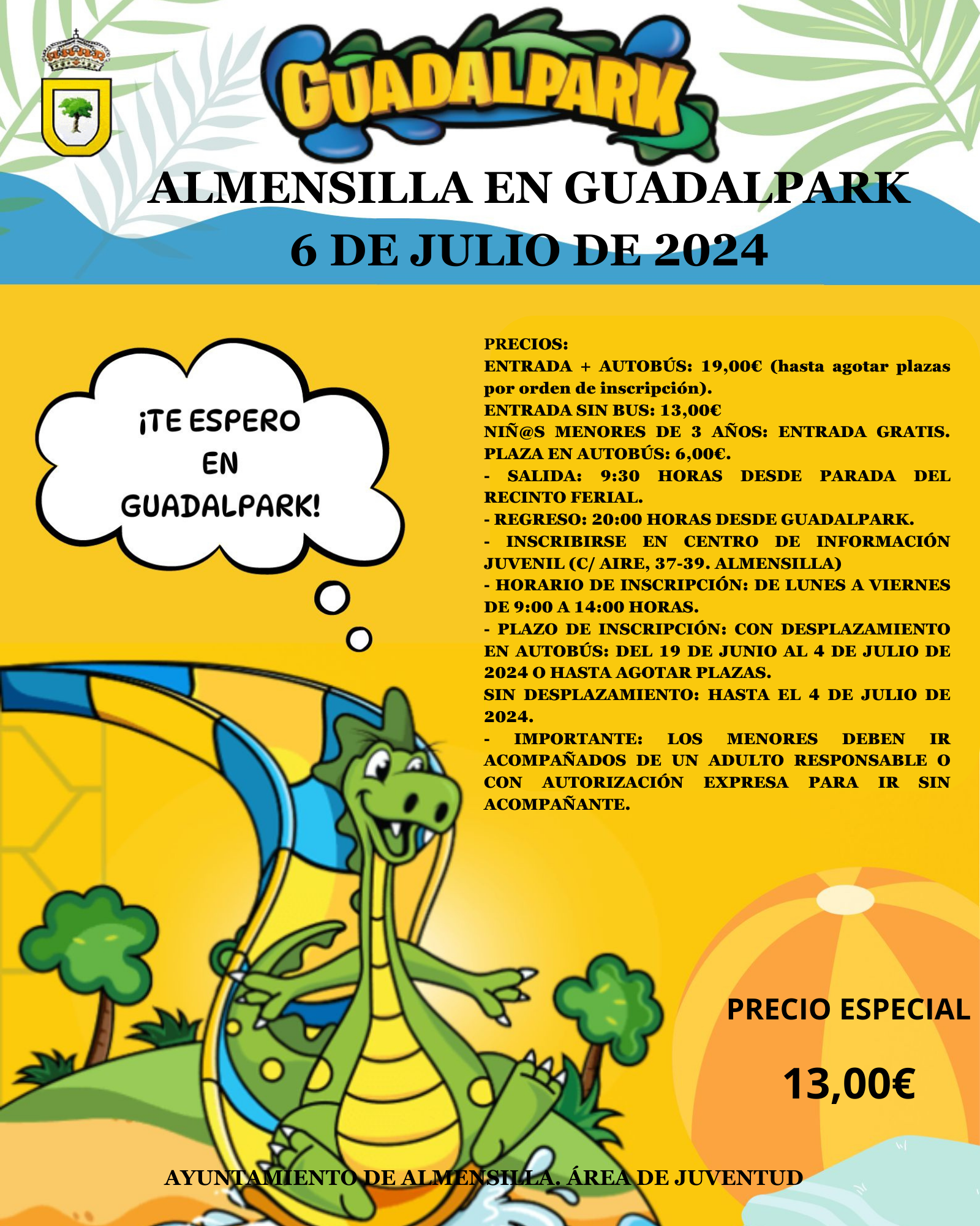 EL PRÓXIMO 6 DE JULIO, DESDE LA CONCEJALÍA DE JUVENTUD DEL AYUNTAMIENTO DE ALMENSILLA, ORGANIZAMOS UN DÍA EN GUADALPARK PARA NUESTRO PUEBLO.
