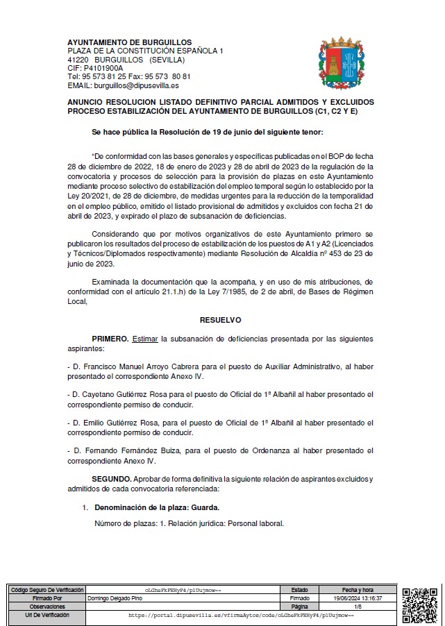 Se hace pública la Resolución de 19 de junio del siguiente tenor: