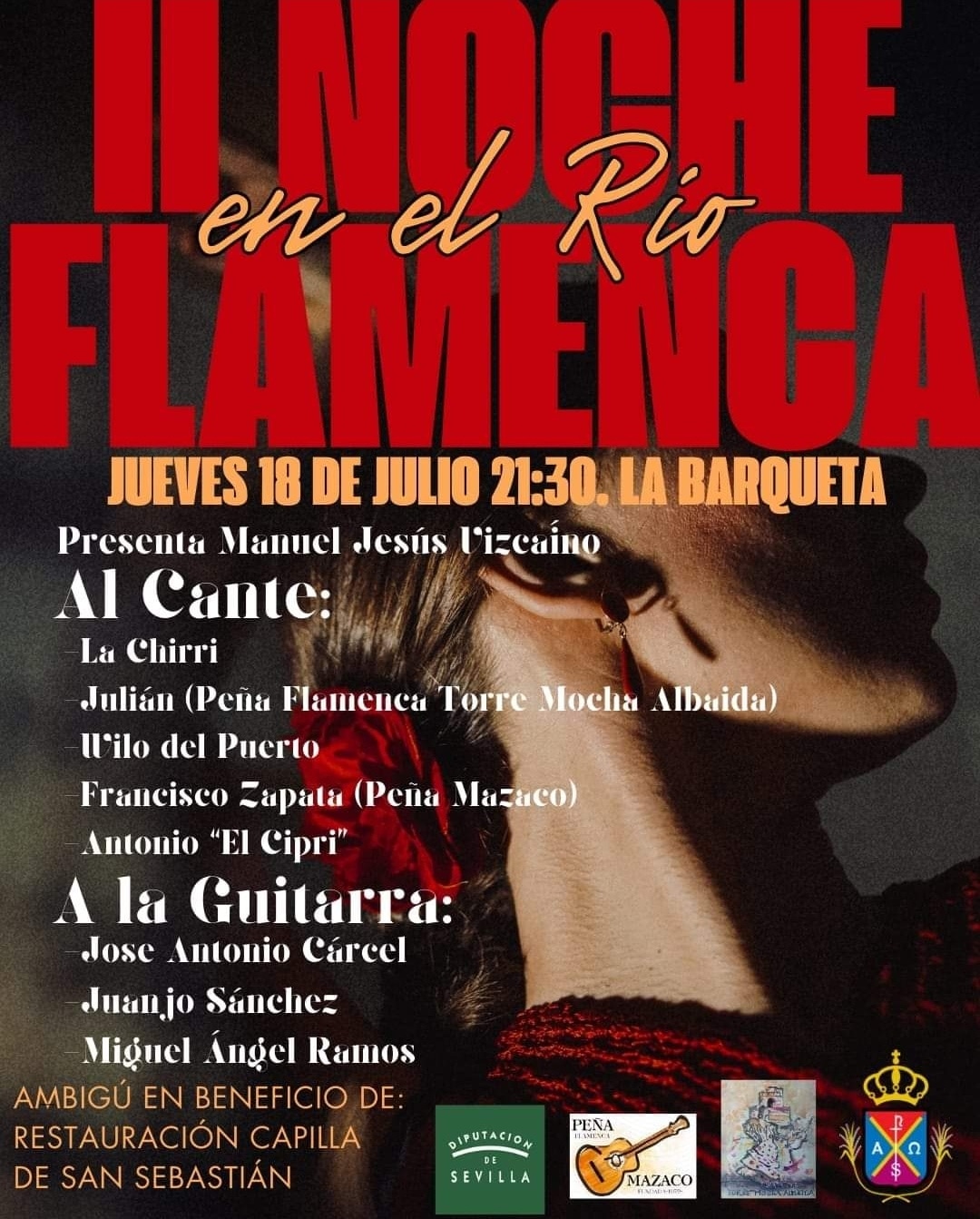 Fecha inicio Jue, 18/07/2024 - 21:30 Fecha fin Jue, 18/07/2024 - 23:30 Imágenes Ubicación Categoría evento Cultura Mostrar en el carrusel de la sección No Más información http://www.lapuebladelrio.es/es/actualidad/eventos/II-Noche-Flamenca-en-el-Rio/