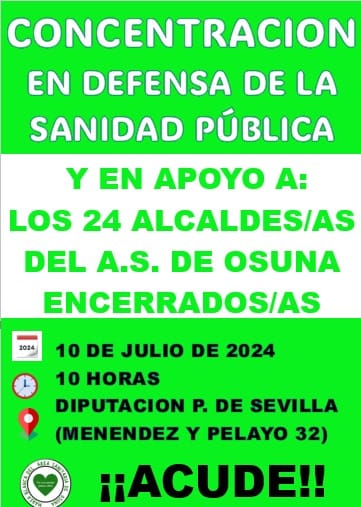 El próximo martes 9 de julio, los alcaldes y alcaldesas de 24 municipios del Área de Gestión Sanitaria de Osuna, entre los que se encuentra Dolores Gordillo, llevarán a cabo un encierro de 24 horas en la sede de la Diputación Provincial de Sevilla. La protesta, que iniciará a las 10:00h del martes y concluirá a las 10:00h del miércoles, tiene como objetivo denunciar el crítico estado de los servicios sanitarios públicos en sus localidades y exigir una solución inmediata a la Junta de Andalucía.