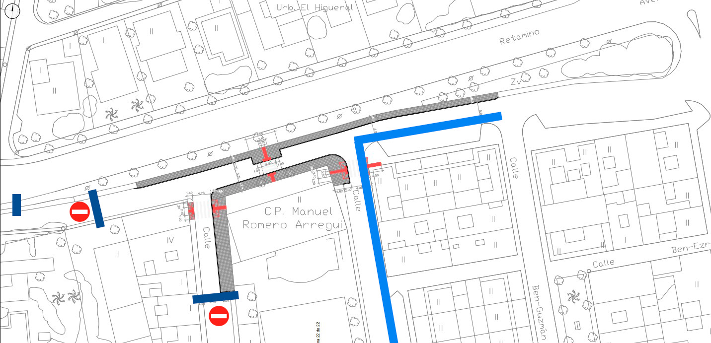 Las obras de reparación del acerado en las proximidades del colegio Manuel Romero Arregui, en concreto en las calles Alcalde Retamino, Juan María Coca y Rumayquilla, obligan a restringir la circulación rodada y peatonal en la zona.
