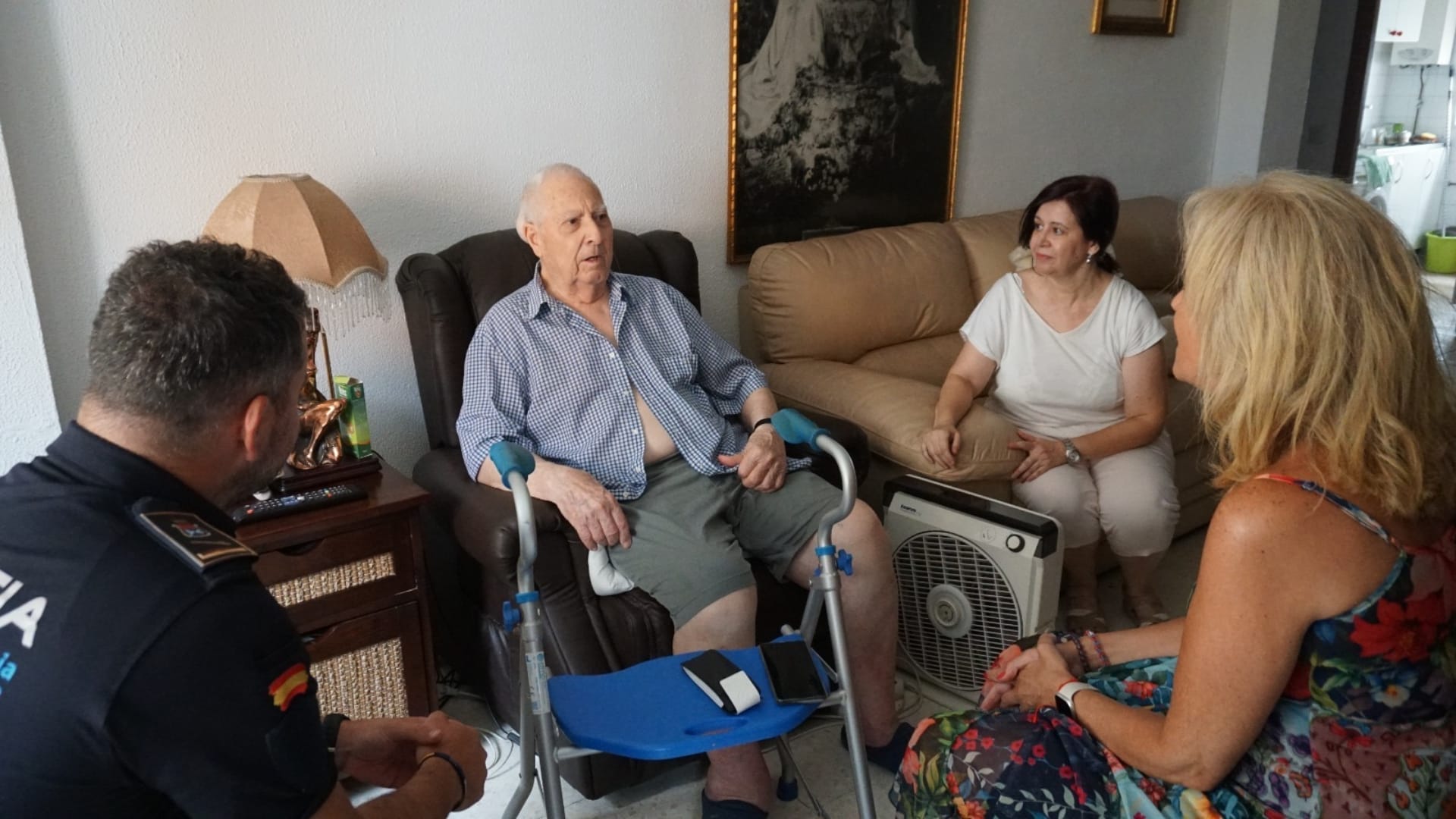 El Ayuntamiento ha puesto en marcha, por octavo verano consecutivo, el programa estival de seguimiento y apoyo a mayores, 'Este verano tu Policía, tu Ayuntamiento junto a ti', gracias al cual personas mayores que viven solas reciben atención periódica de los agentes para velar por su salud y por su seguridad. La alcaldesa, Carmen Herrera, junto al jefe de la Policía Local, Miguel Ángel Hidalgo, ha visitado a varias de las personas que se benefician del programa.