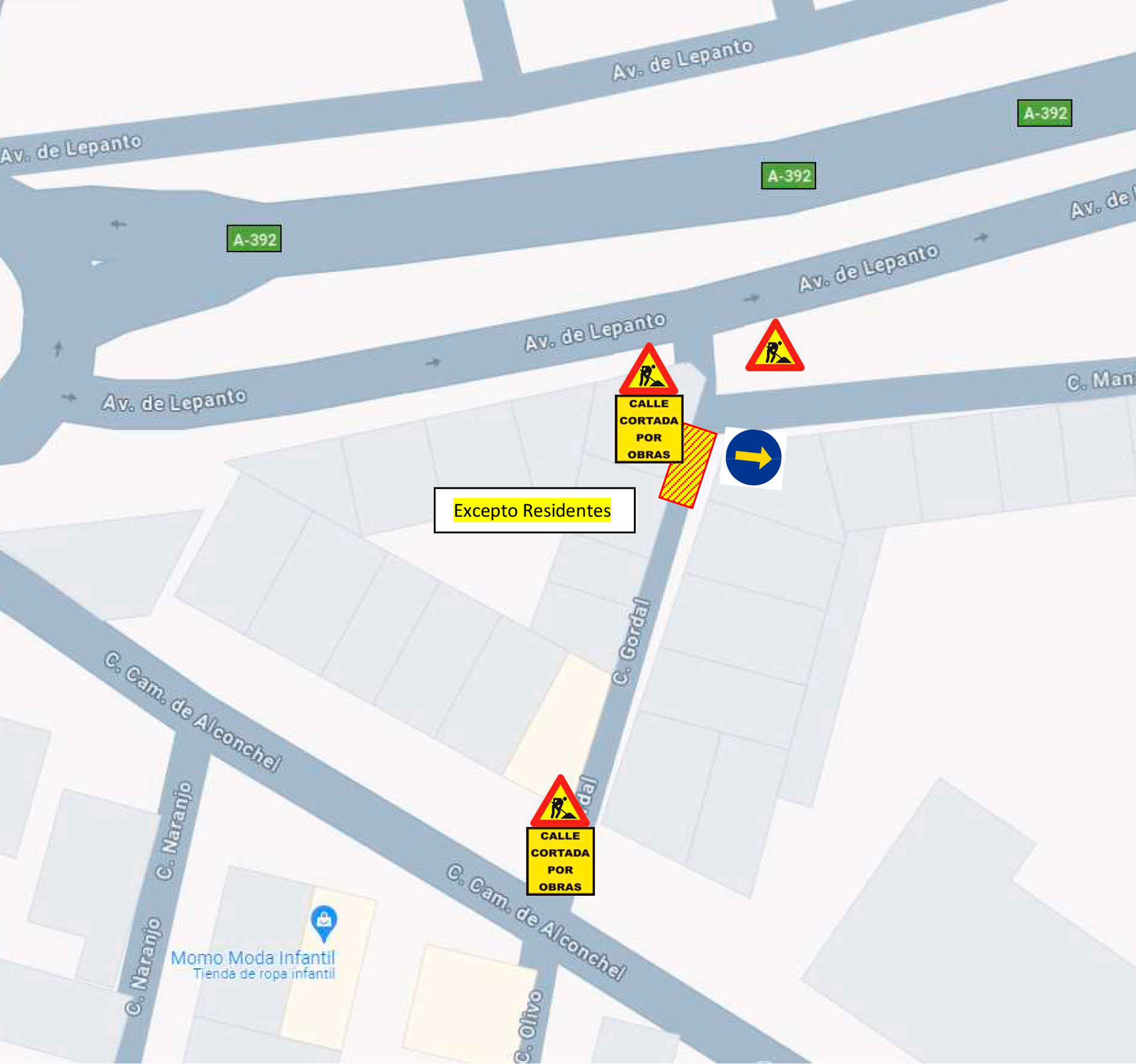 La Policía Local informa del corte total al tráfico rodado en la calle Gordal desde las 10:30 a las 21 horas de hoy miércoles 28 de agosto porque Emasesa está reparando reparando la red de saneamiento en la calzada.