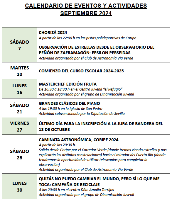 Imagen Ubicación Categoría noticia Cultura Mostrar en el carrusel de la sección No Fecha Mar, 03/09/2024 - 07:00 Más información https://www.coripe.es/es/actualidad-y-agenda/actualidad/Calendario-de-actividad…