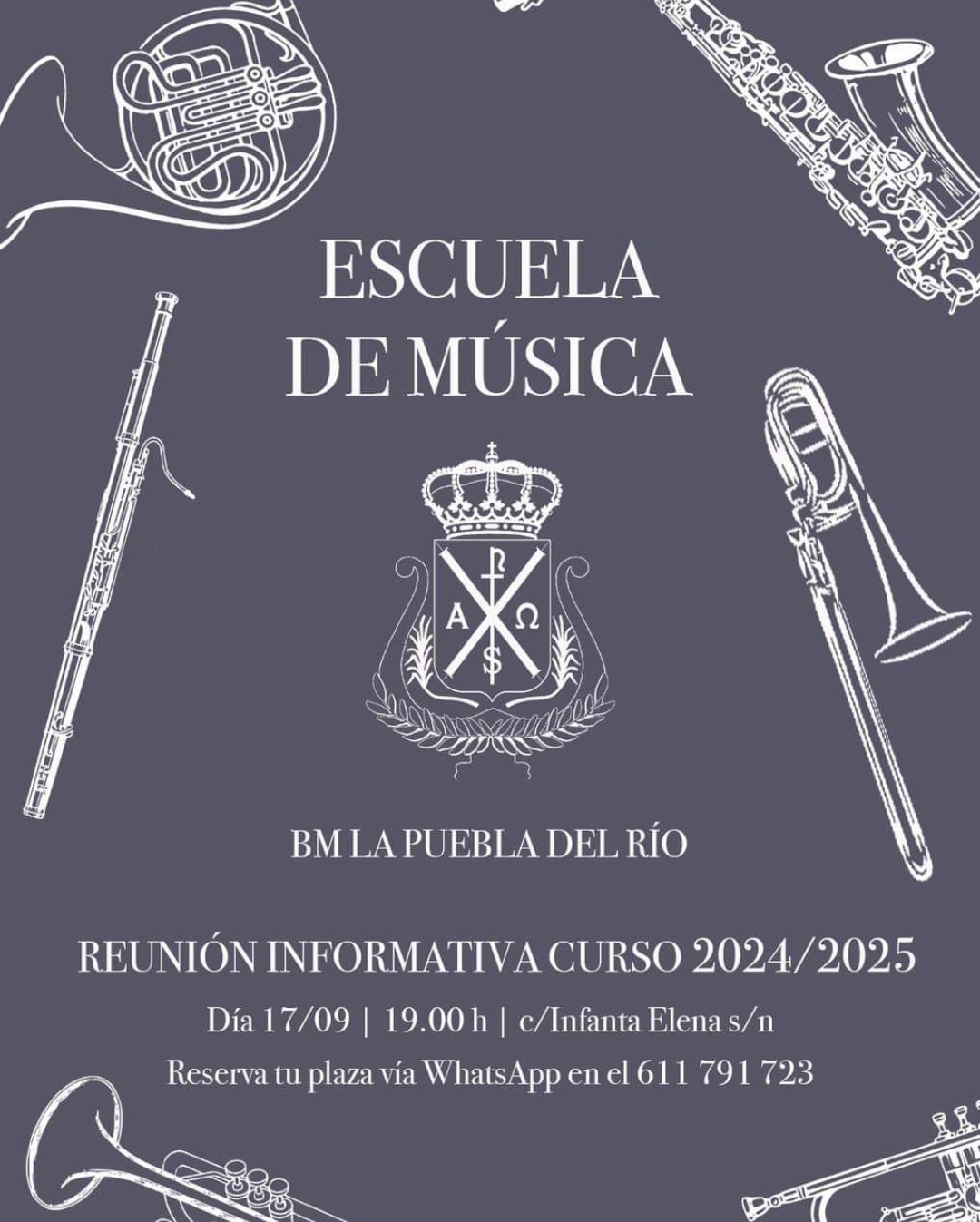 La reunión informativa tendrá lugar el martes 17 de septiembre, a las 19:00 horas, en el local de ensayo de la Banda de La Puebla (c/ Infanta Elena, s/n). En la misma, se expondrán las novedades del curso.