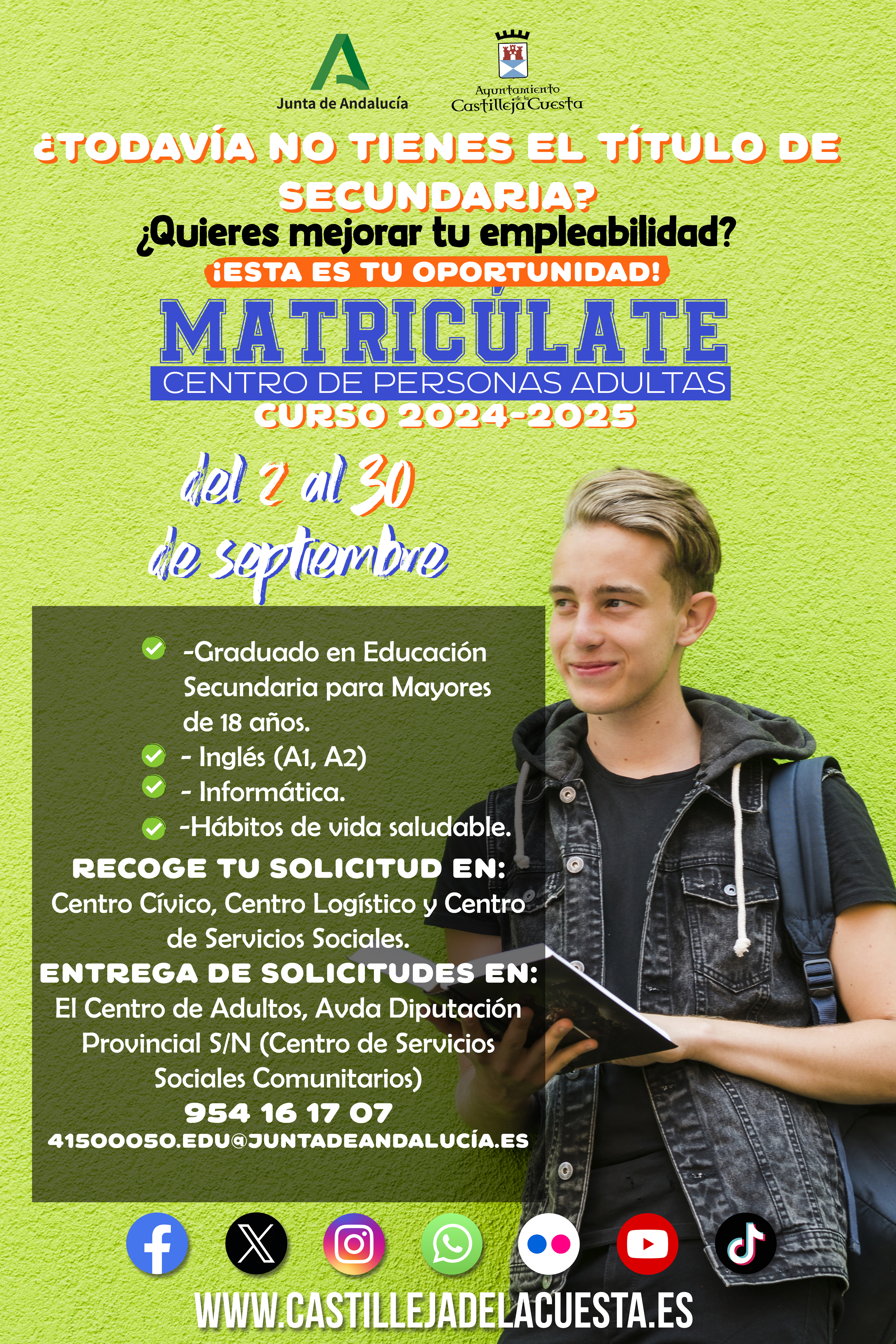 Fecha inicio Lun, 02/09/2024 - 14:10 Fecha fin Lun, 30/09/2024 - 14:10 Imágenes Ubicación Categoría evento Educación Mostrar en el carrusel de la sección No Más información http://www.castillejadelacuesta.es/es/actualidad/eventos/Matriculacion-en-el-CE…