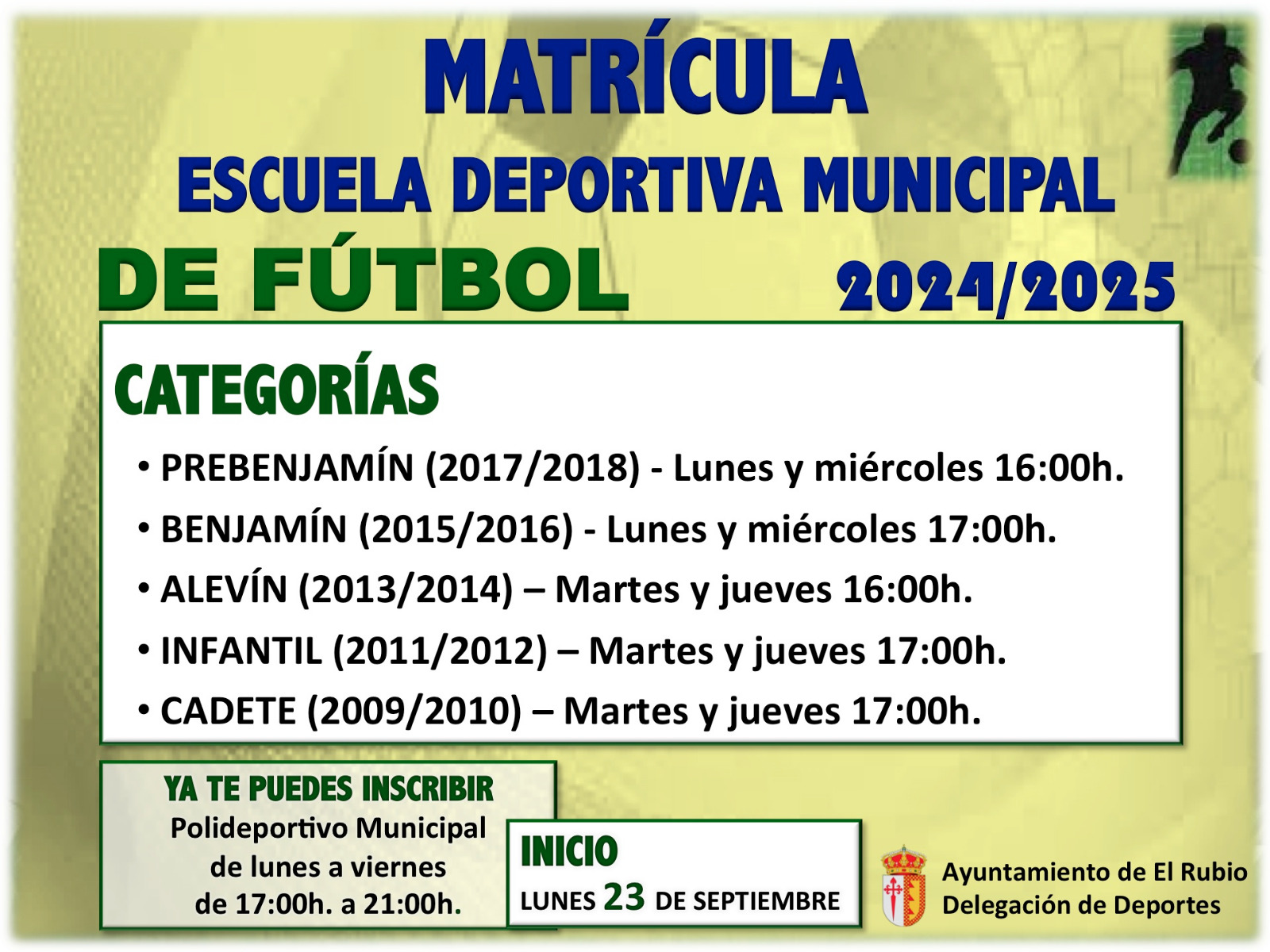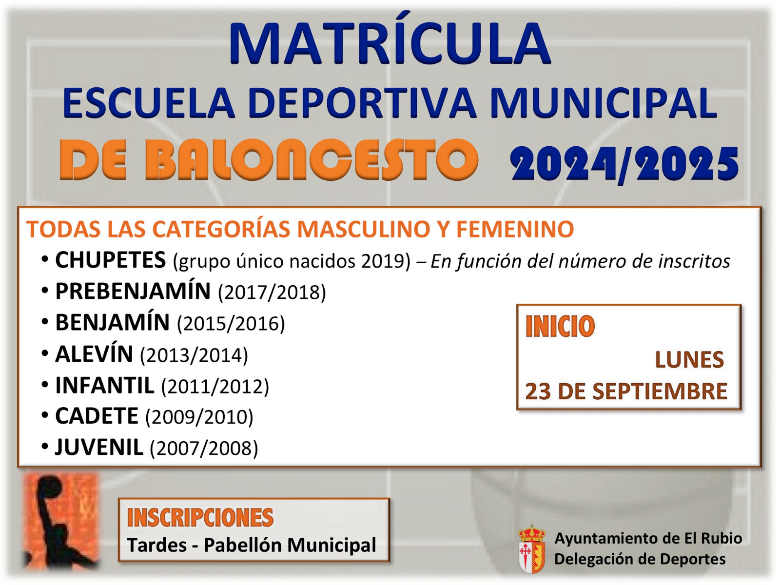 Abierto el plazo de inscripción para las escuelas deportivas municipales de fútbol y baloncesto, en los siguientes cuadros se informa sobre las distintas categorías y días de inicio