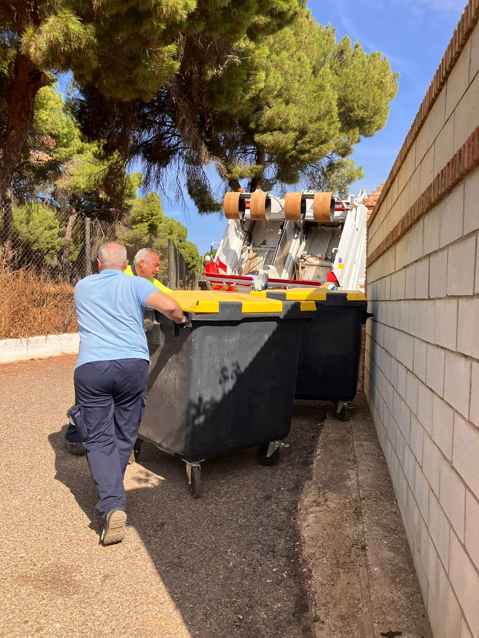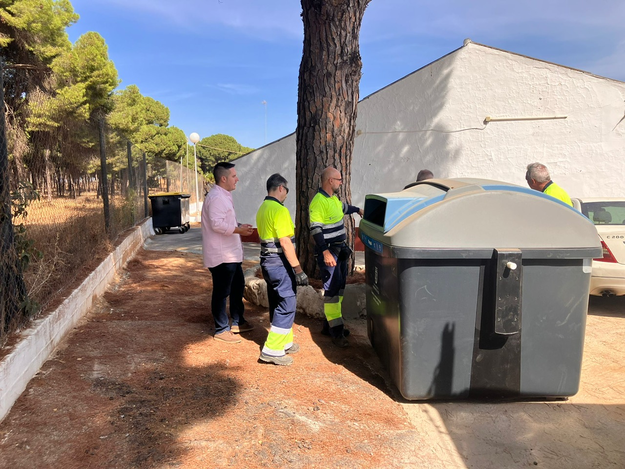 La urbanización la Hijuelilla dispone de un espacio habilitado para albergar los nuevos contenedores que garantiza el uso exclusivo de los vecinos. El concejal de Limpieza, José Romero, asistió para comprobar los cambios, junto a los empleados de la empresa adjudicataria del servicio, Paprec.