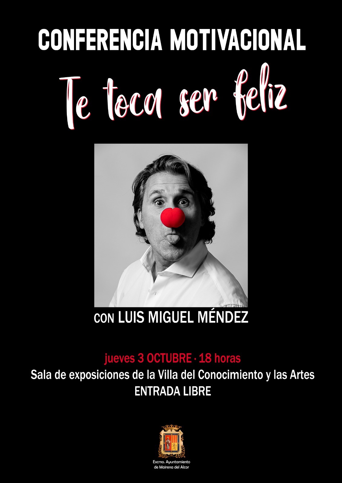 Horario: 18 horas Fecha inicio Jue, 03/10/2024 - 18:00 Fecha fin Jue, 03/10/2024 - 19:00 Imágenes Ubicación Categoría evento Cultura Mostrar en el carrusel de la sección No Más información http://www.mairenadelalcor.es/es/actualidad/eventos/Conferencia-motivacional-Te…