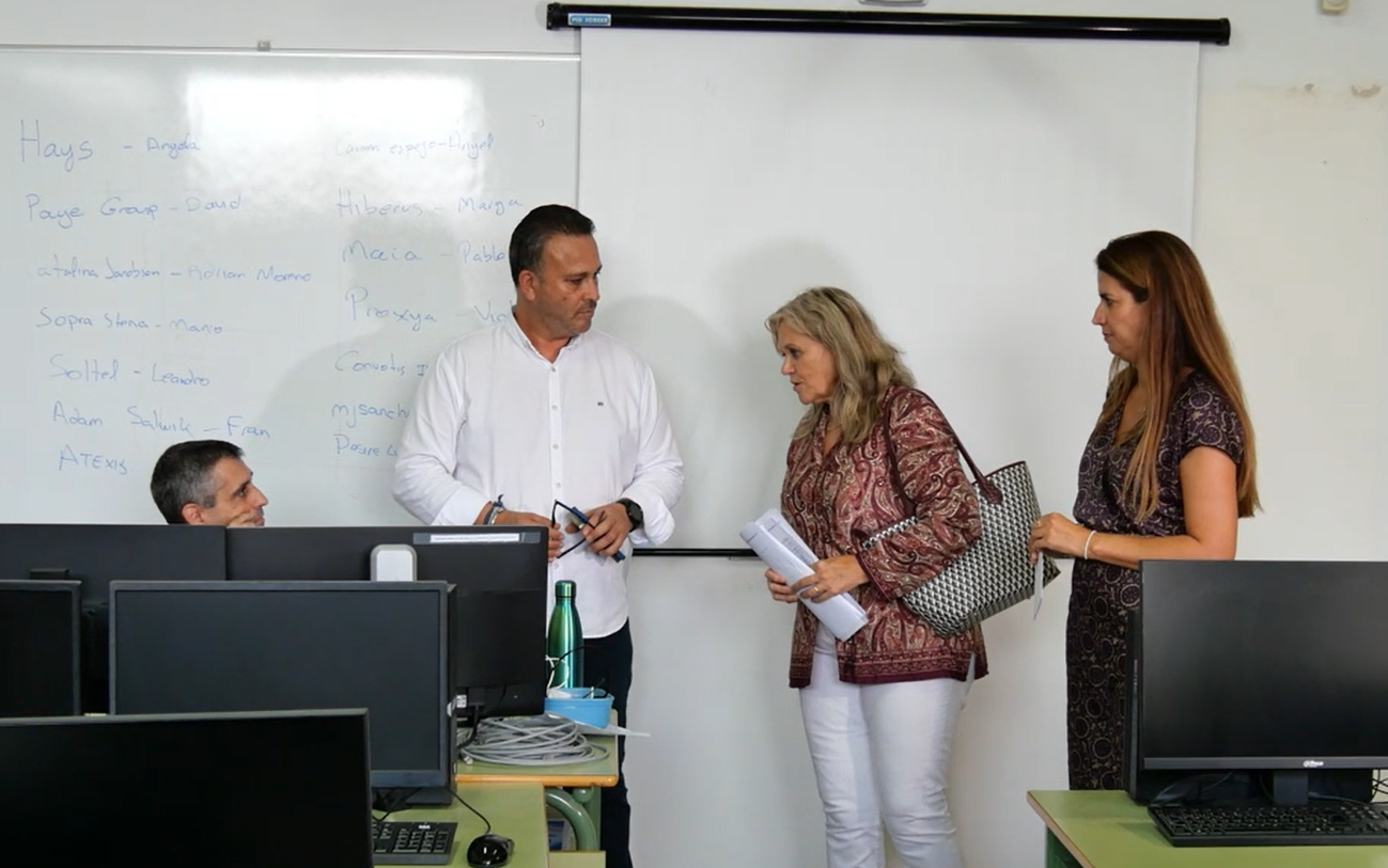 El concejal de Servicios, José Romero, junto a la directora del I.E.S. Los Alcores, María de Gracia Carrión, han visitado esta mañana el edificio anexo del instituto donde se imparten el ciclo formativo de grado medio Instalaciones frigoríficas y climatización y el ciclo de grado superior Desarrollo de aplicaciones web.