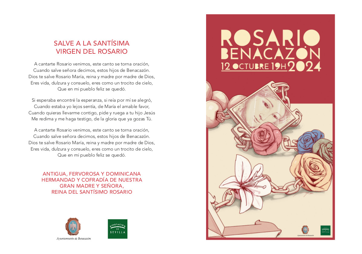 El Ayuntamiento de Benacazón informa sobre los Solemnes Cultos de las Fiestas del Rosario 2024 que puedes consultar en el enlace que adjuntamos al díptico - programación de las Fiestas, con la siguiente aclaración sobre la OFRENDA FLORAL Y DONANTES DE FLORES:
