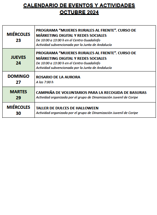 Imagen Imágenes Ubicación Categoría noticia Cultura Mostrar en el carrusel de la sección No Fecha Jue, 03/10/2024 - 07:00 Más información https://www.coripe.es/es/actualidad-y-agenda/actualidad/Calendario-de-actividad…