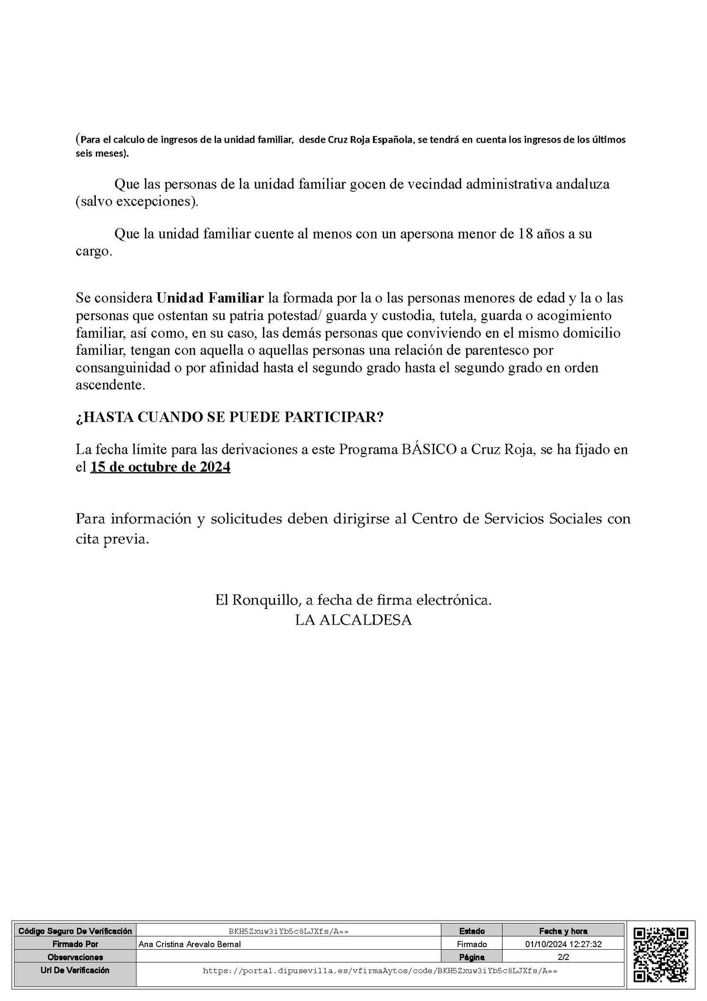 La fecha límite para las derivaciones a este Programa BÁSICO a Cruz Roja, se ha fijado en el 15 de octubre de 2024