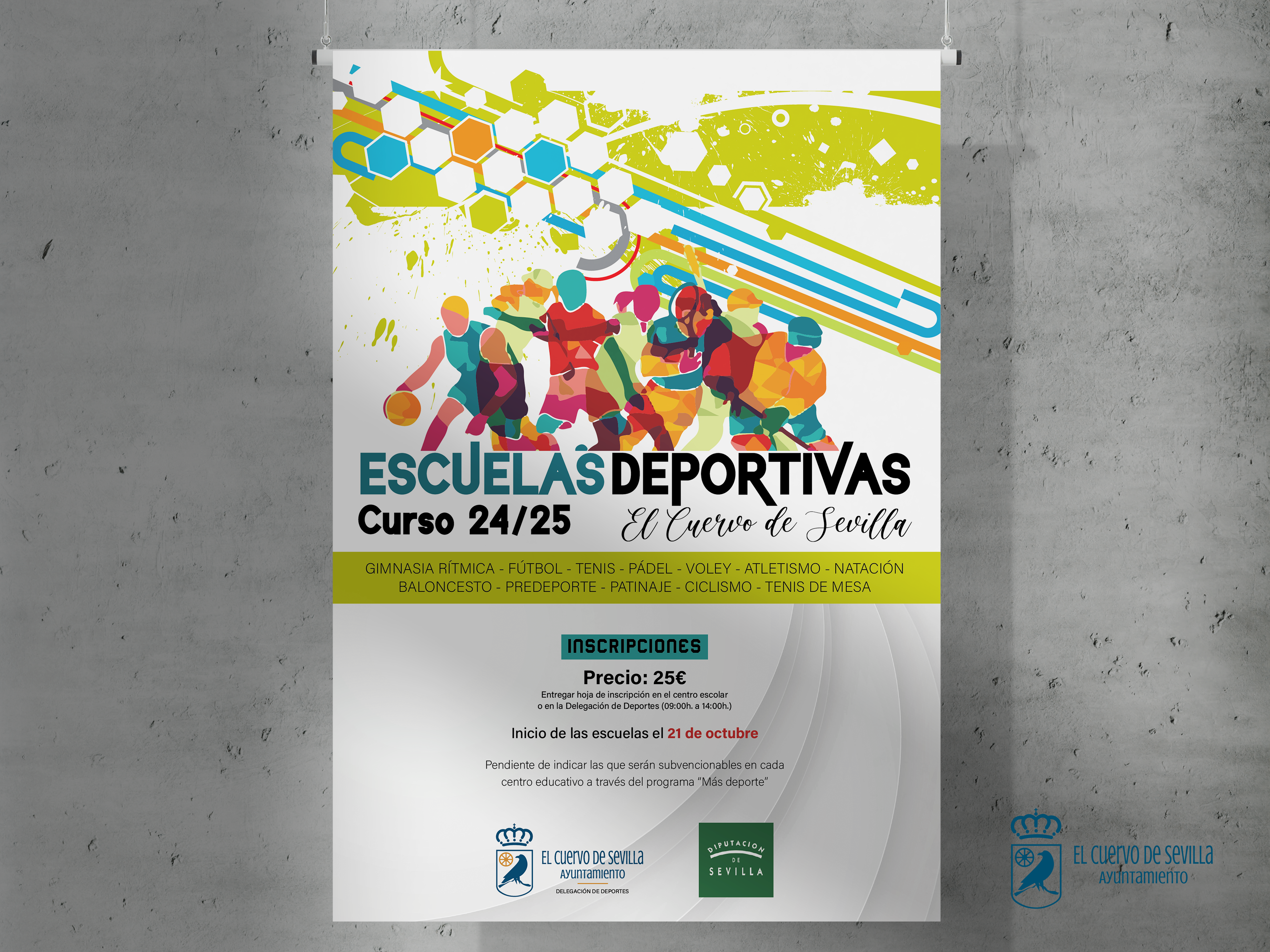 Las escuelas deportivas municipales darán comienzo el próximo 21 de octubre, y el precio de inscripción es de 25€, quedando pendiente de concretar aquellas plazas subvencionables en cada centro educativo a través del programa "Más Deporte" gracias a la Diputación de Sevilla.