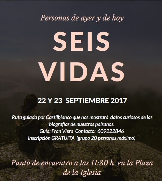 Bajo el título Seis vidas, personas de ayer y de hoy, con esta actividad se busca dar a conocer la evolución de Castilblanco de los Arroyos. Para ello y a través de la biografía de seis paisanos, los que participen en esta ruta descubrirán datos curiosos sobre la vida de estos vecinos y su repercusión en la sociedad que les tocó vivir, abarcando desde el siglo XVI hasta prácticamente nuestros días.