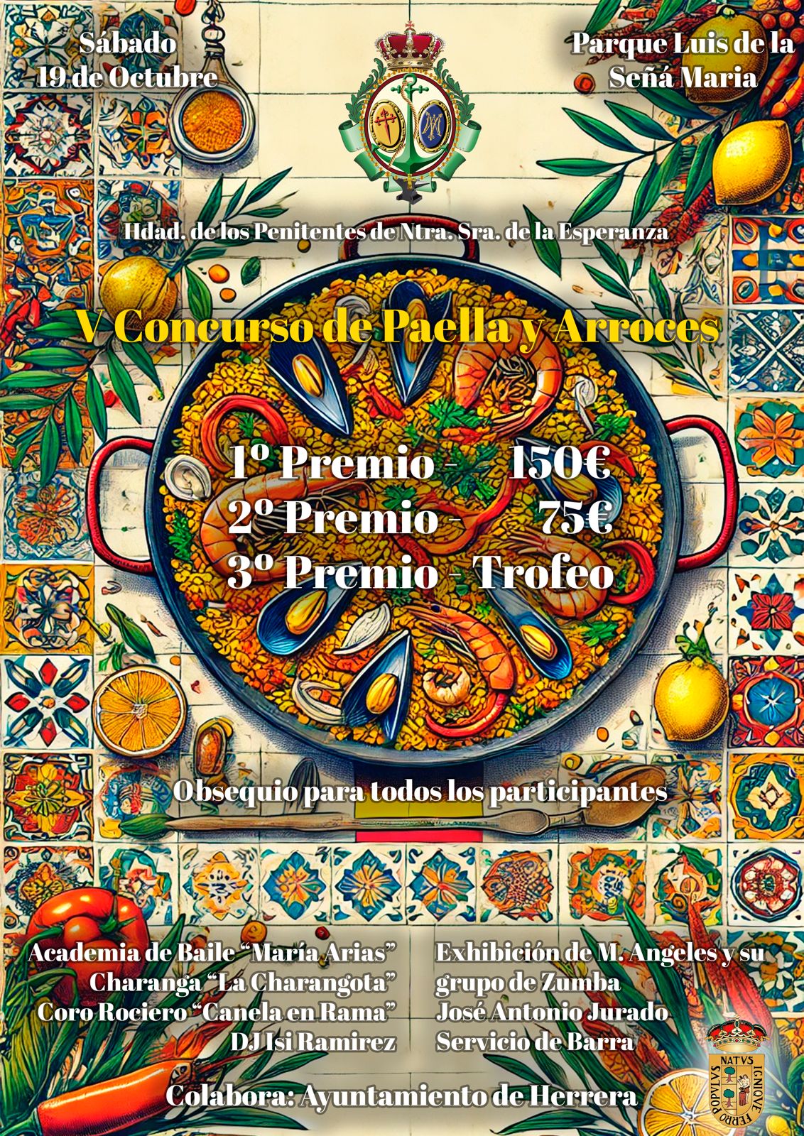 La Hermandad de los Penitentes de Ntra. Sra. de la Esperanza organiza la quinta edición del Concurso de Paella y Arroces. Tendrá lugar el sábado 19 de octubre en el Parque Municipal "Luis de la señá María". ¡Obsequio para todos los participantes!