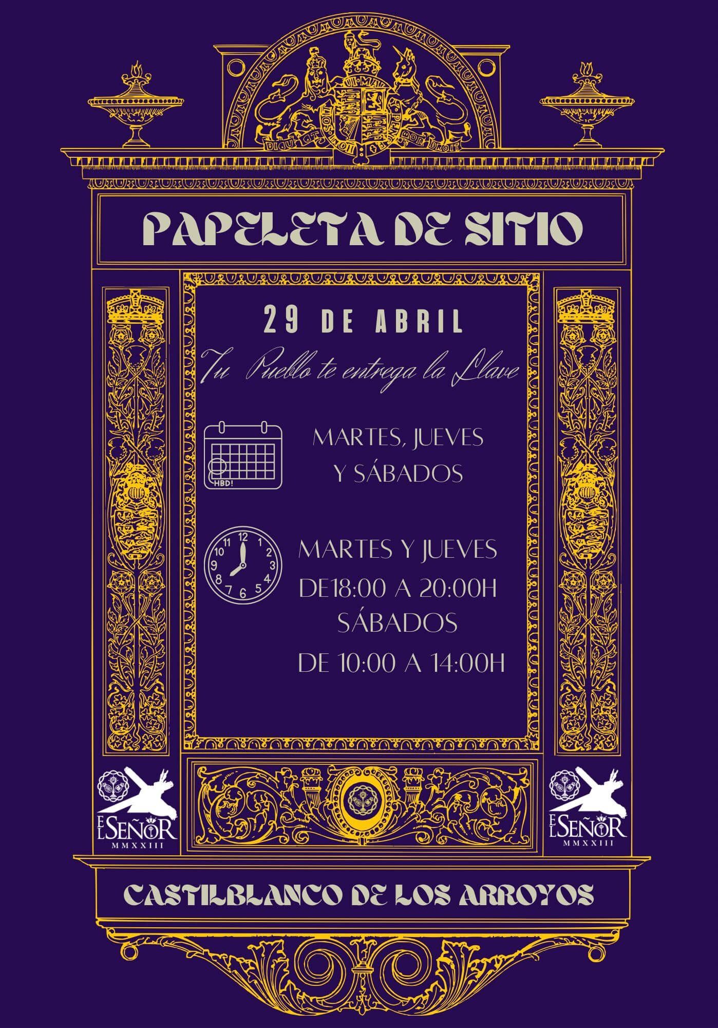 Las papeletas se podrán reservar los martes y jueves en horario de 18:00 a 20:00 horas y los sábados de 10:00 a 14:00 horas en la Casa Hermandad. Precio: 5€.