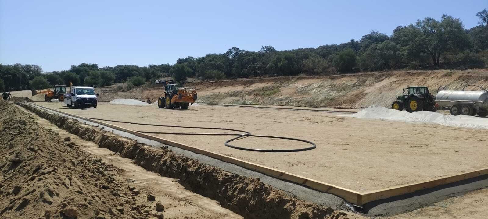 Las obras avanzan según los plazos establecidos, pudiéndose observar ya cómo quedará distribuido el espacio. Una pista, con unas dimensiones de 64x34 metros, de arena multifuncional, y que muy pronto se convertirá en una de las más grandes de la comarca.