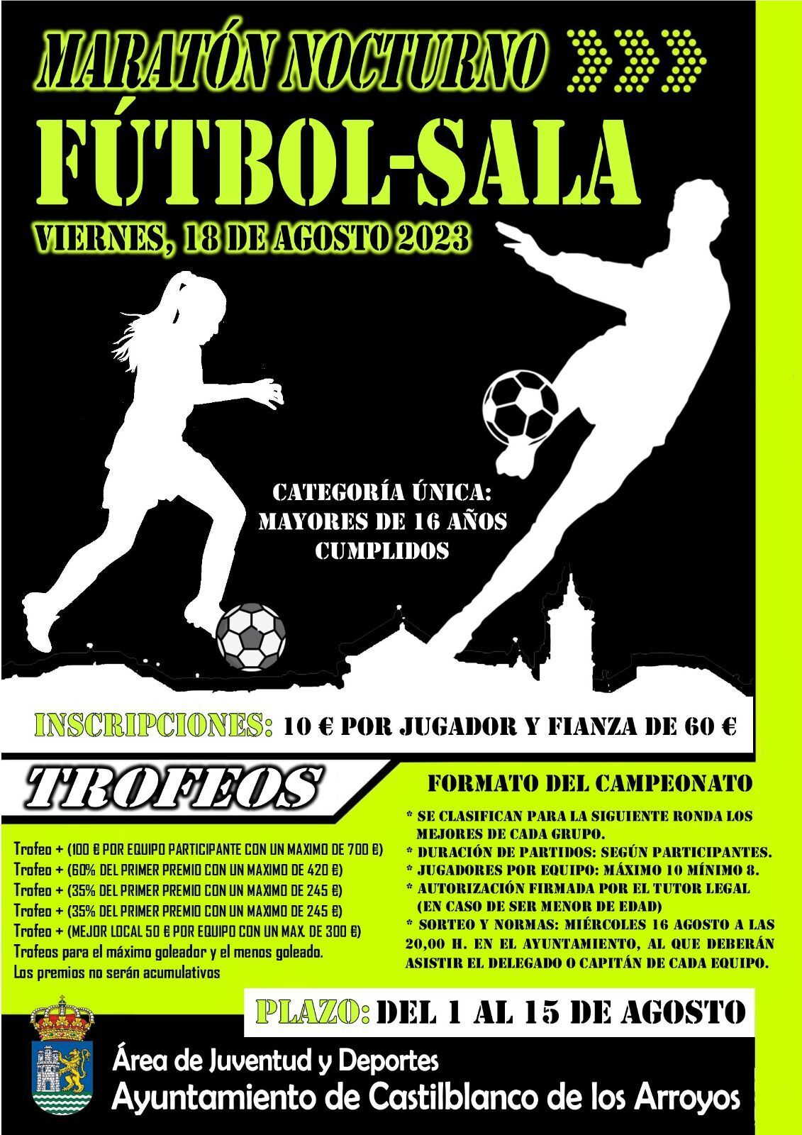 Recordarles que a esta oferta de actividades deportivas se suma de cara a este mes de agosto la celebración del II Maratón de Fútbol Sala que se jugará el viernes 18 de agosto y cuyo plazo de inscripción se mantiene abierto.