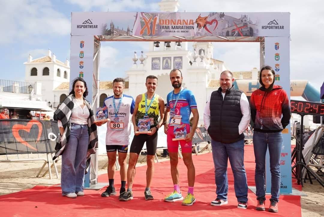 Nuestro paisano Ezequiel se volvía a subir el pasado sábado al cajón del pódium, esta vez en la tercera posición, del XI Doñana Trail Marathon, consiguiendo realizar los 68km del recorrido que une Sevilla con El Rocío, en 4h 55m.