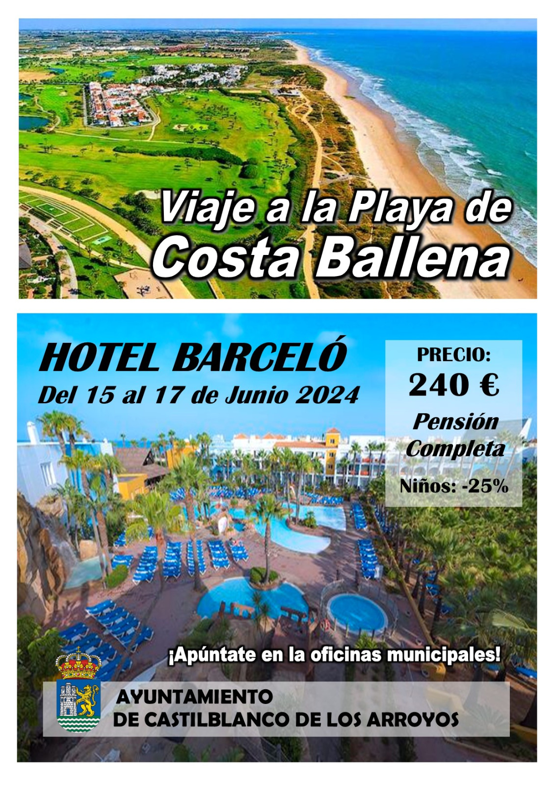 El viaje se realizará del 15 al 17 de junio, con estancia en el hotel Barbeló de Costa Ballena, en Rota.