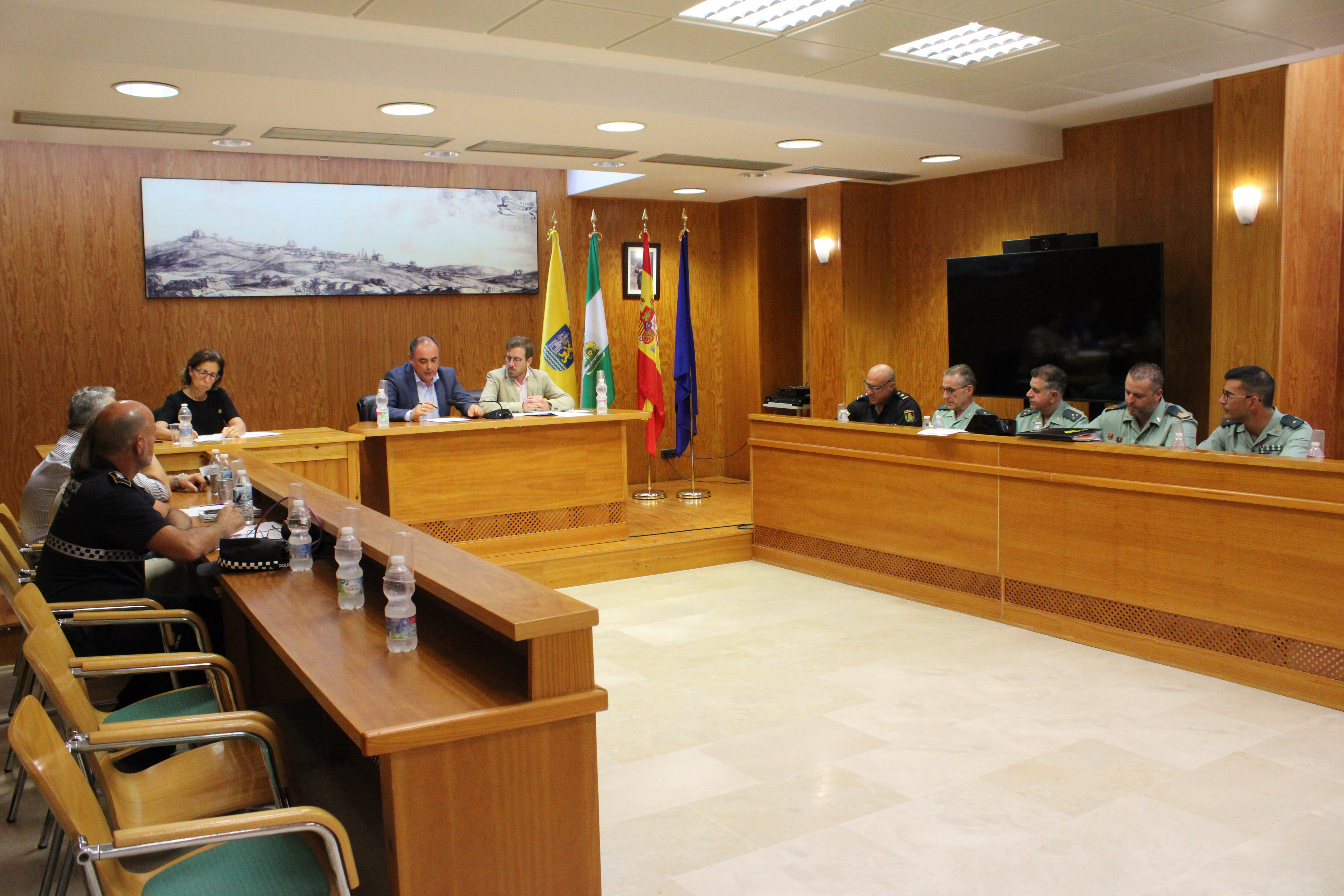 Una reunión en la que también participaban Fernando López y Chari Vázquez, como Concejales de Seguridad y Fiestas, el Comandante de la Guardia Civil de Sevilla, Blas Sevillano, el Capitán Jefe de la Guardia Civil de La Rinconada, Eduardo Padilla, el Sargento Primero Comandante de Puesto, Benjamín Uribe, el Jefe Provincial del Cuerpo Nacional de la Policía, José María González, y el Jefe de la Policía Local, Juan Luis Romero.
