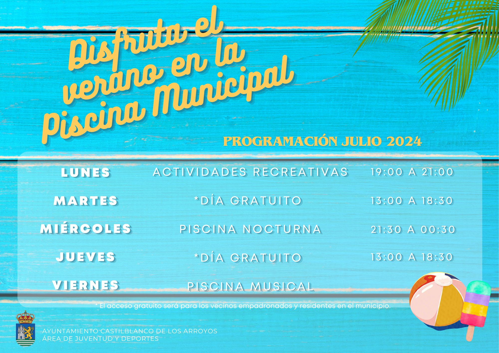 Piscina nocturna los miércoles, a partir de las 21.00 h, con acceso gratuito.