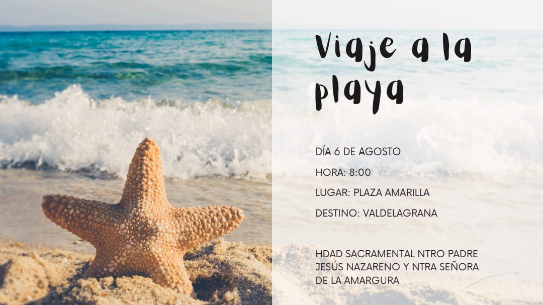Continúan los viajes a la playa organizados por los distintos colectivos vecinales y hermandades de nuestro pueblo, como es el caso de la Hermandad de Nuestro Padre Jesús Nazareno que presenta su nuevo calendario de fechas para el mes de agosto.