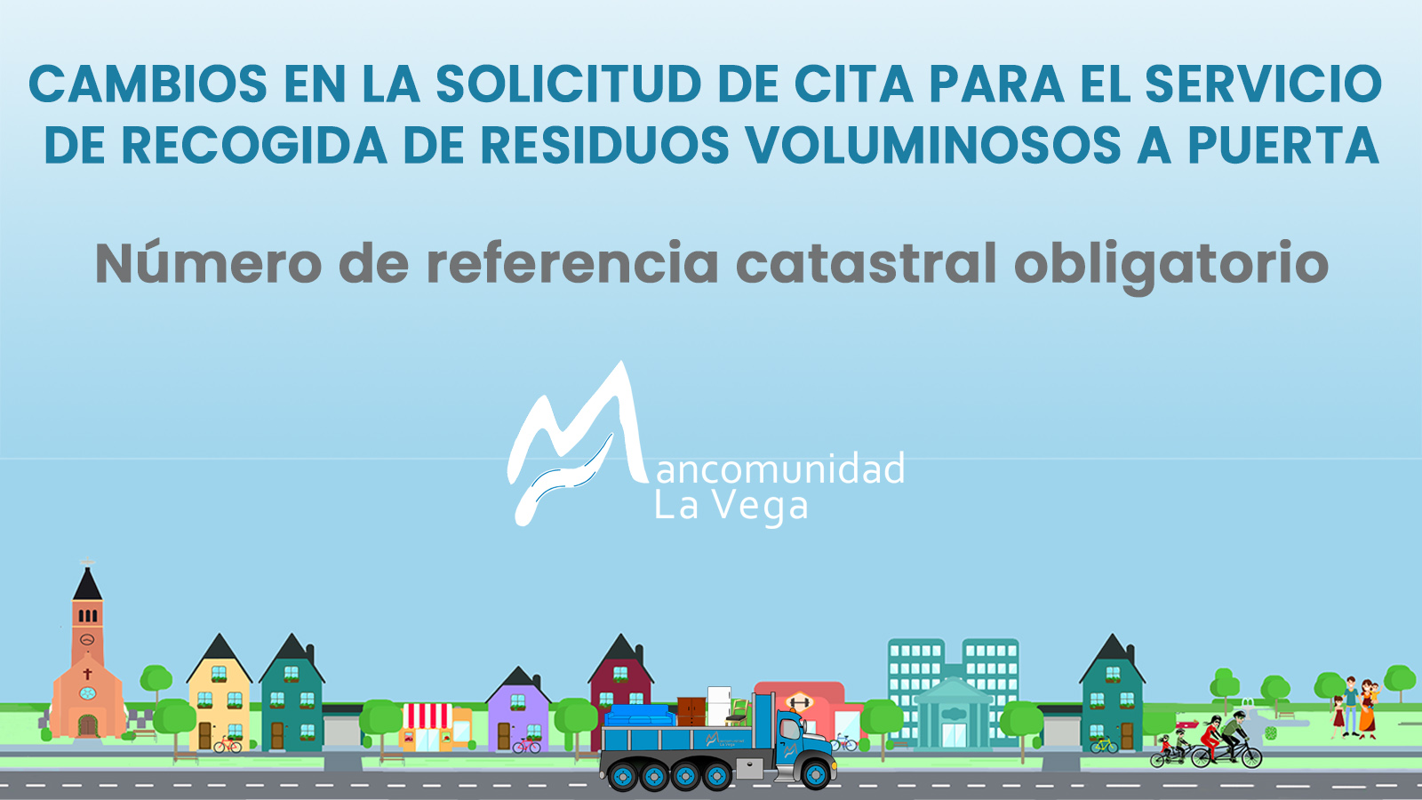 Desde la Mancomunidad de Servicios La Vega se nos informa de que a partir del lunes16 de septiembre, para tramitar la solicitud de citas para la recogida de residuos voluminosos a puerta se deberá facilitar el número de referencia catastral de la vivienda.
