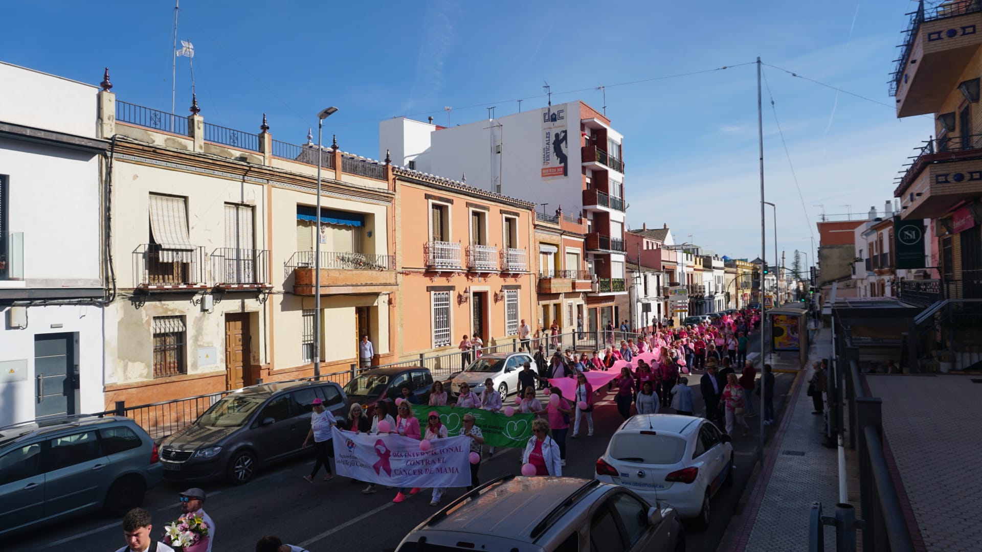 Castilleja de la Cuesta se ha teñido de rosa este domingo en apoyo al Día Internacional Contra el Cáncer de Mama con una gran marcha por el municipio, en la que han participado vecinos y vecinas, portando una enorme tela rosa de 100 metros de largo, como símbolo de solidaridad con las personas afectadas por esta enfermedad y sus familias.