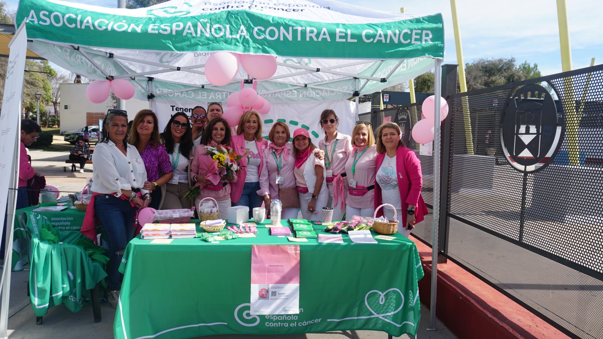 La alcaldesa, Carmen Herrera; la presidenta de la Junta Local de la Asociación Española contra el Cáncer de Castilleja de la Cuesta, Rosario Gómez, y representantes de las Asociaciones AMFE, Tarazanas y Fibrocasticuesta, que han sido las encargadas de llevar la pancarta institucional, a lo largo del recorrido por el municipio, que ha estado amenizado por una charanga.