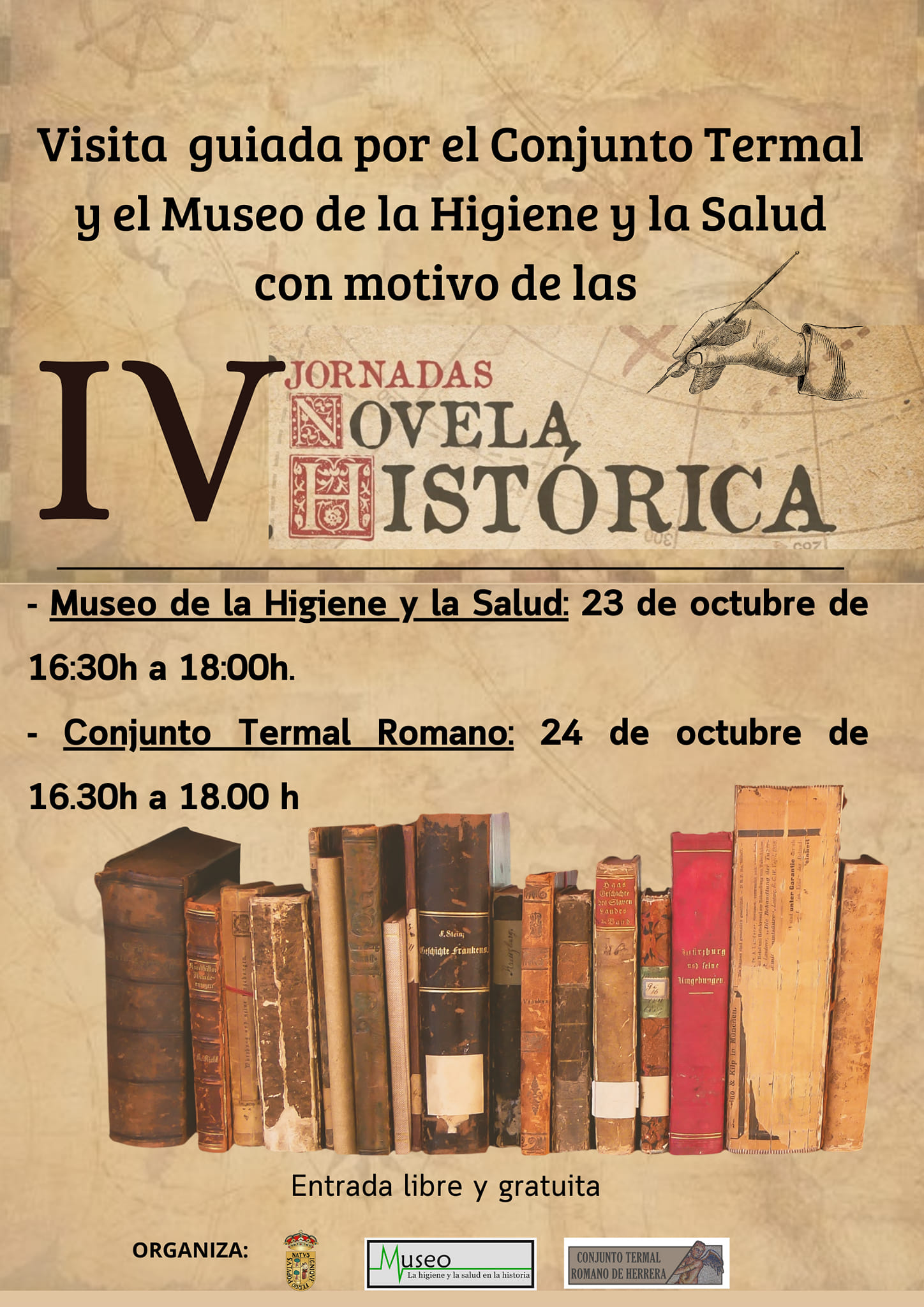 Con motivo de la celebración de las IV Jornadas de Novela Histórica, el Conjunto Termal Romano y el Museo de la Higiene y la Salud en la Historia estarán abiertos en horarios excepcionales para que las personas que asistan a este evento puedan previamente visitar estos lugares de interés.