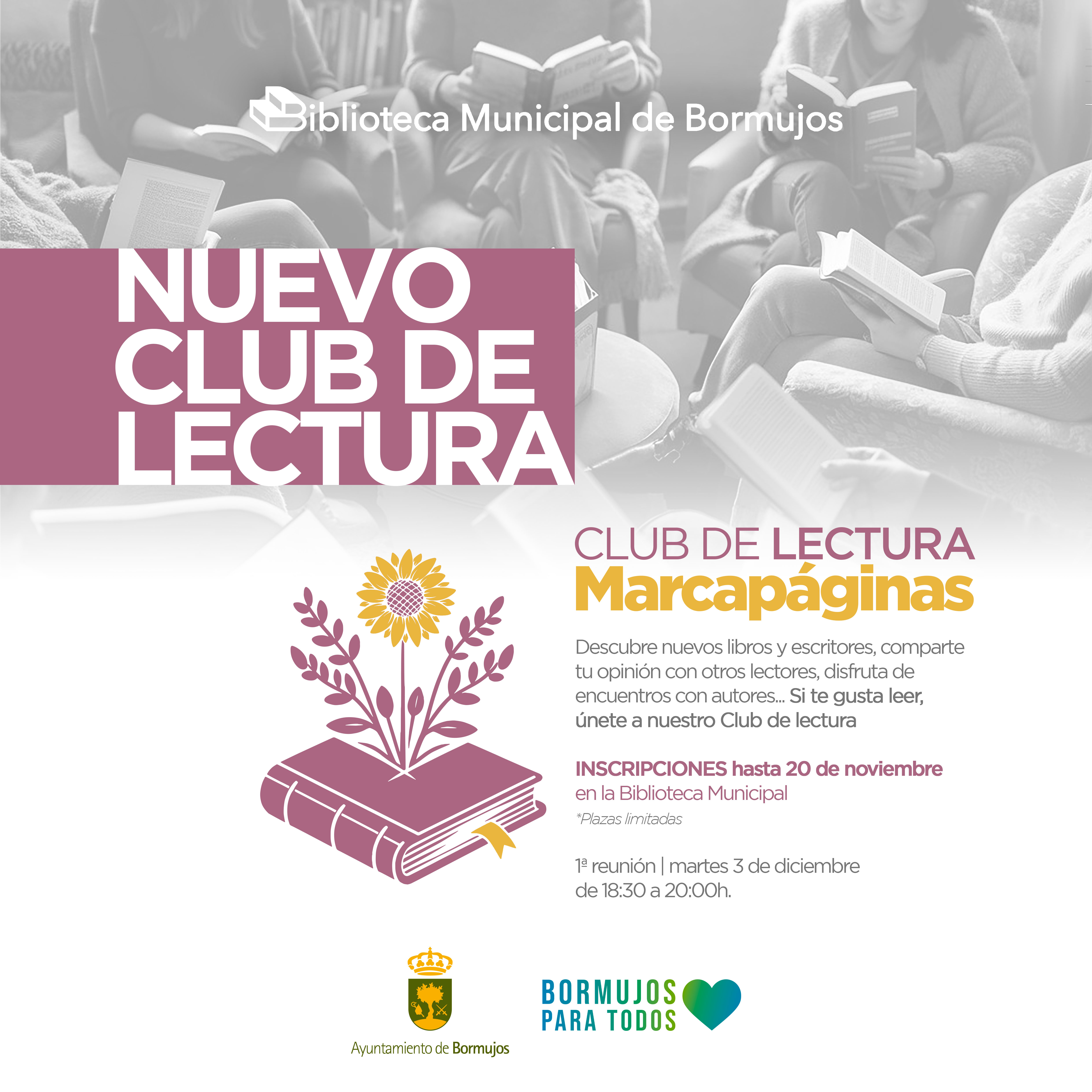 Si estás interesad@ puedes inscribirte hasta el 20 de noviembre en la Biblioteca Municipal Bormujos y solicitar información.
