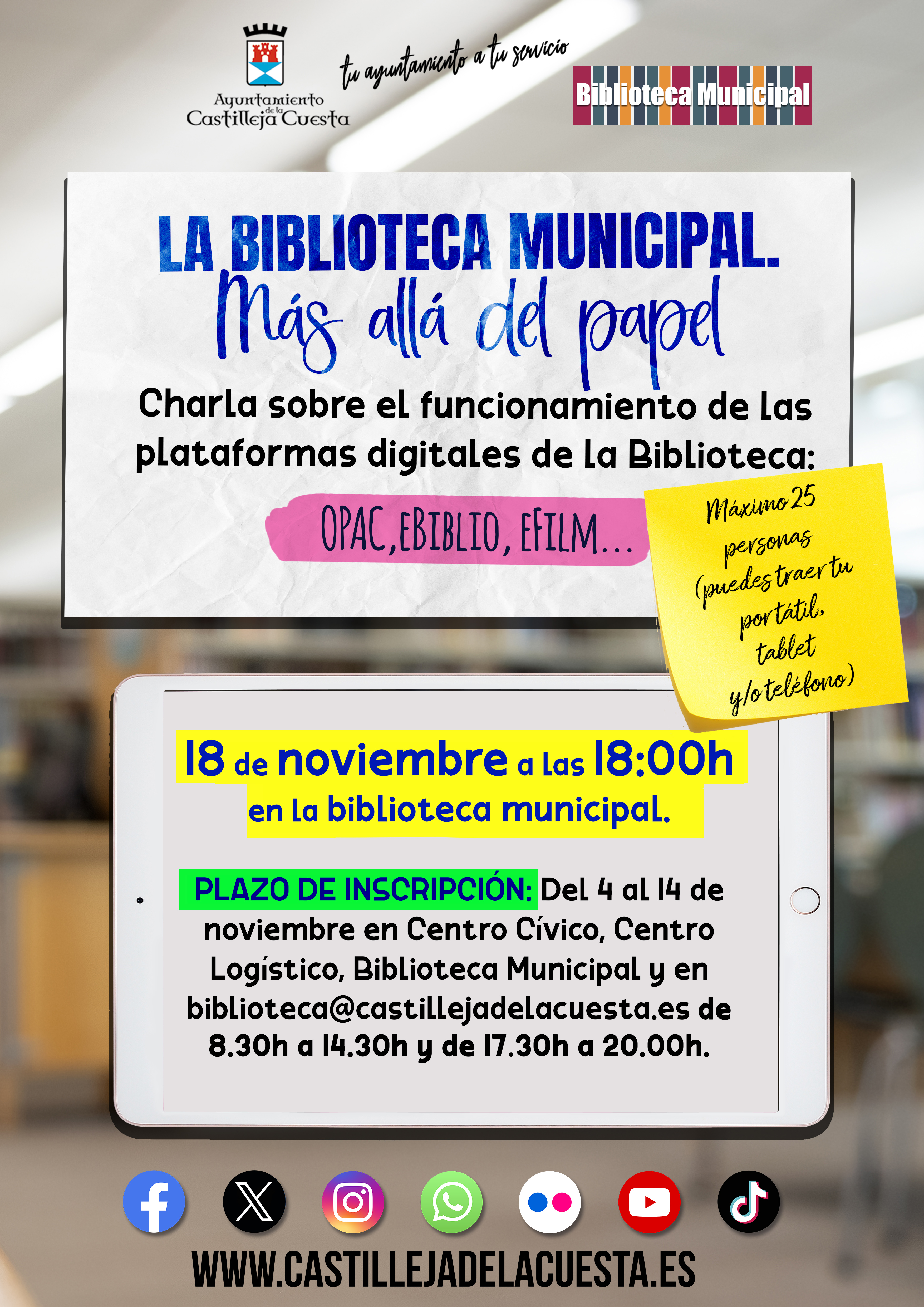 Fecha inicio Lun, 04/11/2024 - 13:40 Fecha fin Jue, 14/11/2024 - 13:40 Imágenes Ubicación Categoría evento Cultura Mostrar en el carrusel de la sección No Más información http://www.castillejadelacuesta.es/es/actualidad/eventos/La-biblioteca-municipa…