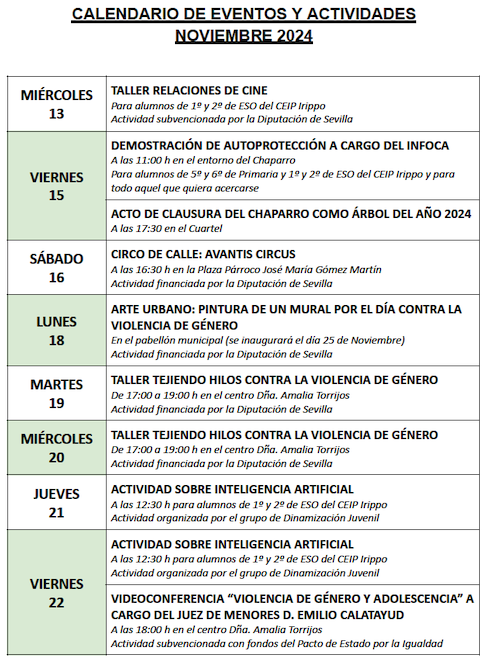 Imagen Imágenes Ubicación Categoría noticia Cultura Mostrar en el carrusel de la sección No Fecha Jue, 07/11/2024 - 07:00 Más información https://www.coripe.es/es/actualidad-y-agenda/actualidad/Calendario-de-actividad…