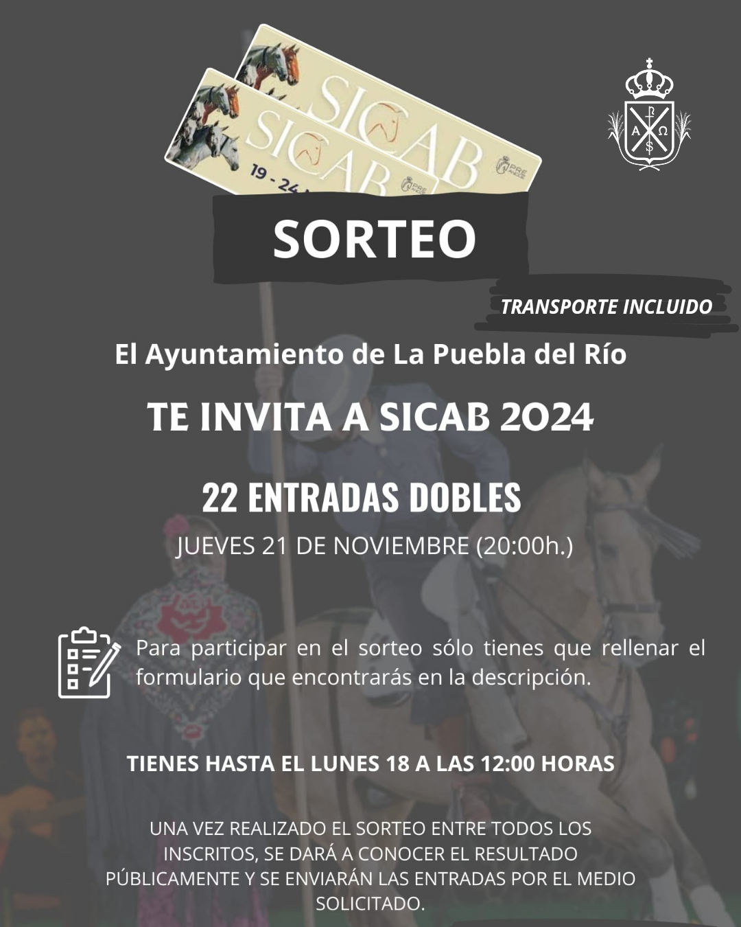 Sorteamos 22 entradas dobles para el próximo jueves 21 de noviembre, a las 20:00h, para asistir al Salón Internacional del Caballo (SICAB) 2024.
