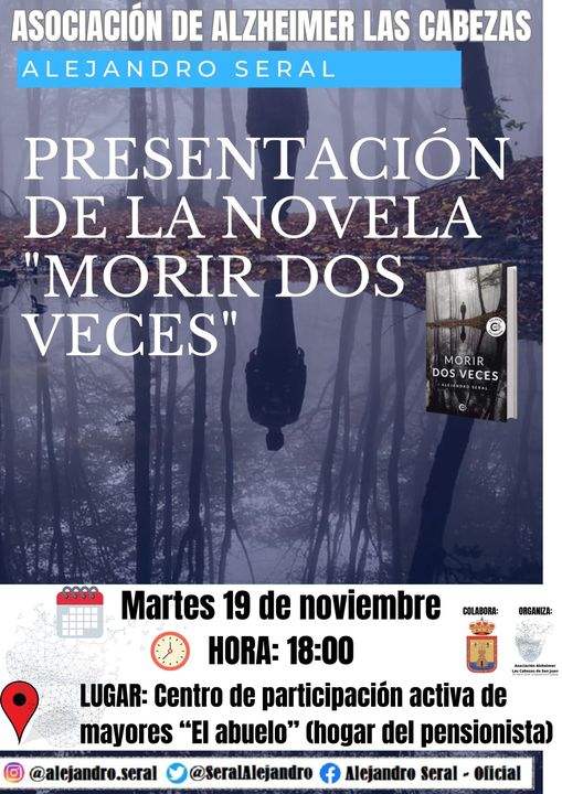 La Asociación de Alzheimer de Las Cabezas de San Juan te invita a un encuentro muy especial. El próximo martes 19 de noviembre a las 18:00, presentaremos el libro "Morir dos veces", una novela profundamente conmovedora sobre la enfermedad de Alzheimer. Durante el evento, se proyectará un emotivo documental de aproximadamente 40 minutos que nos acercará aún más a la realidad de quienes viven y luchan cada día con esta enfermedad. Tras la visualización, contaremos con la presencia del autor del libro, quien compartirá su experiencia y visión. Además, podrás adquirir tu ejemplar firmado al finalizar la presentación.