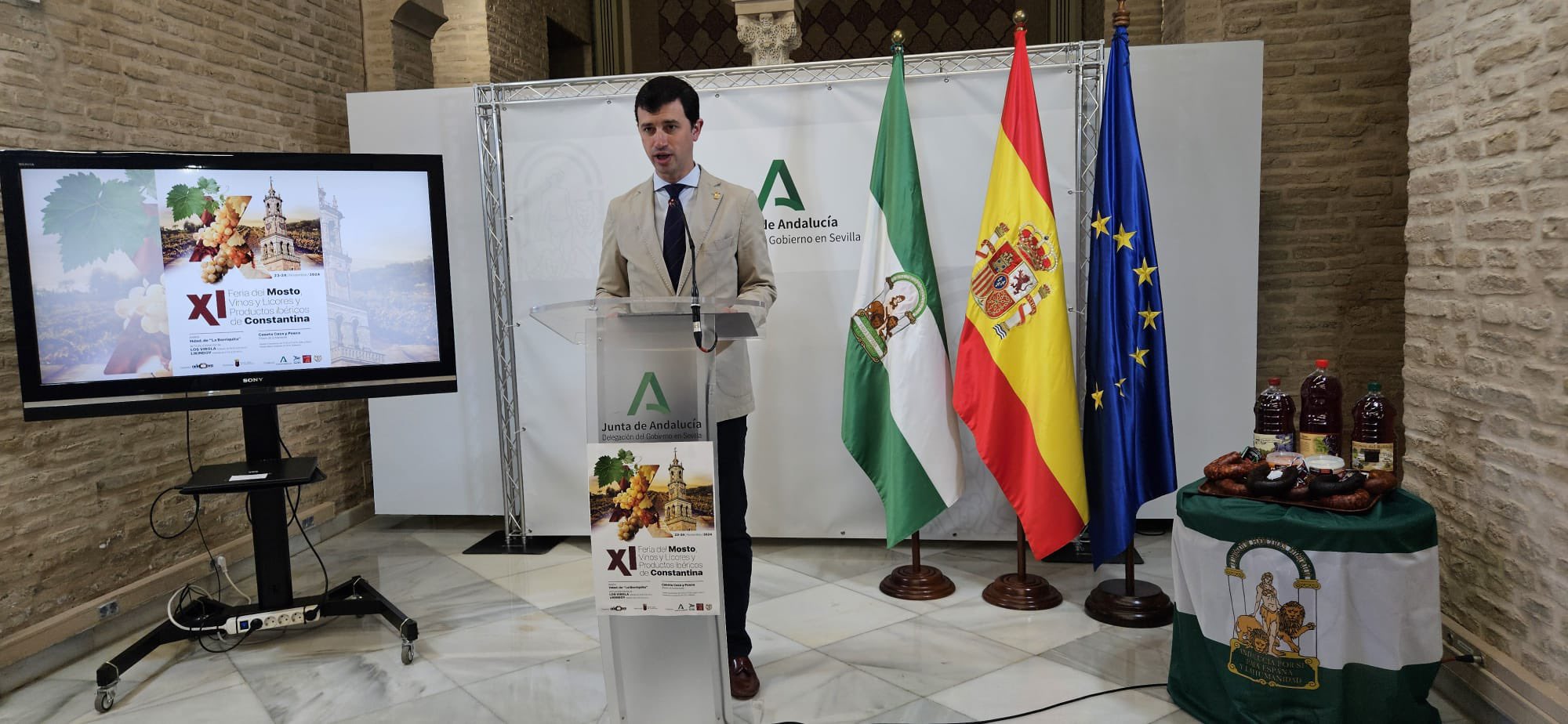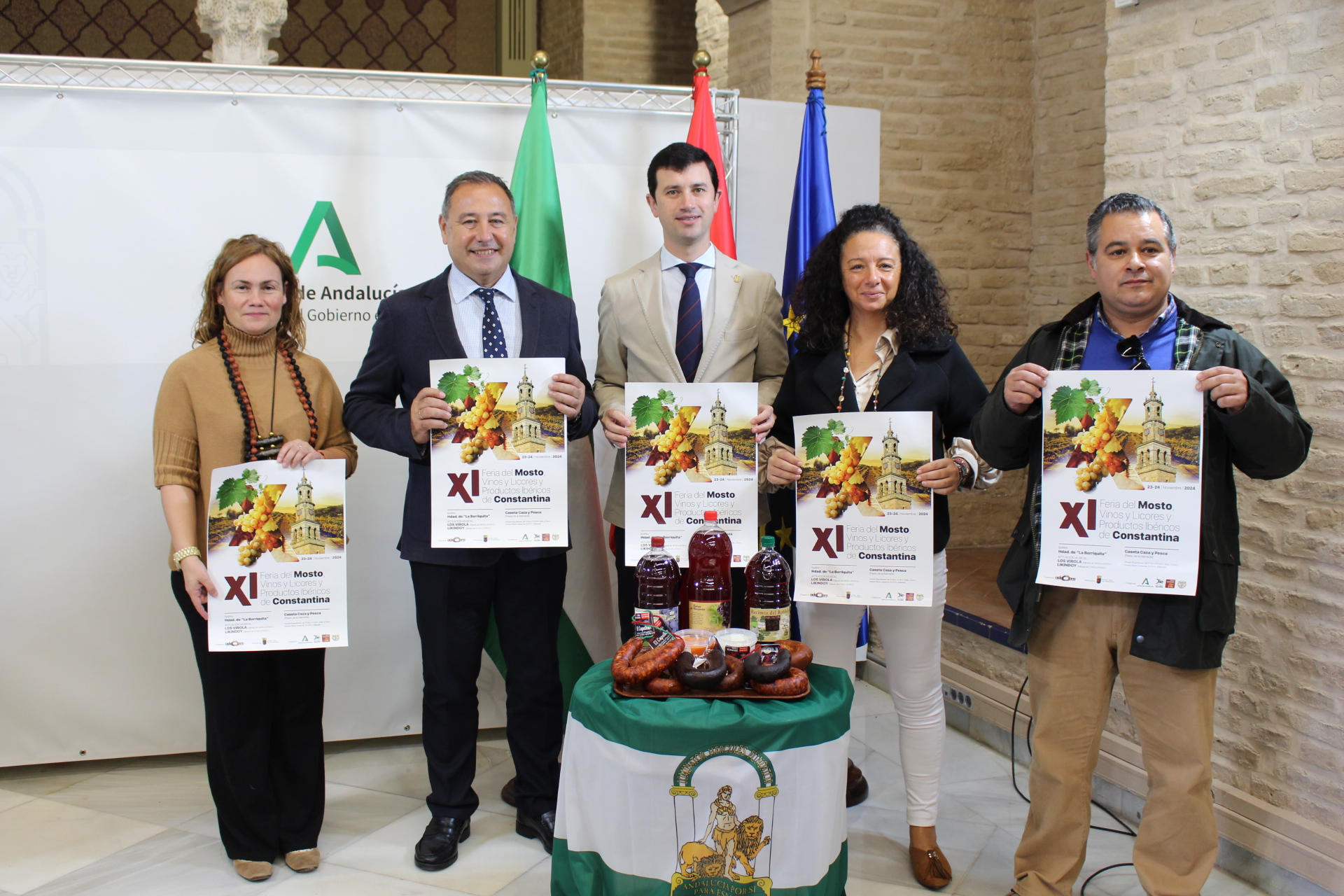 El delegado del Gobierno de la Junta de Andalucía en Sevilla, Ricardo Sánchez, junto al alcalde de Constantina, Rubén Rivera, presentaba el pasado viernes 15 de noviembre la XI Feria del Mosto, Vino, Licores y Productos Ibéricos de Constantina, que se celebrará en la localidad serrana los próximos sábado 23 y domingo 24 de noviembre. La muestra, organizada por la Asociación de Empresarios y Comerciantes de Constantina (Adeccons) en colaboración con el Ayuntamiento de la localidad, la Junta de Andalucía, Turismo de la Provincia de Sevilla y la Diputación de Sevilla, se desarrollará en la Caseta de Caza y Pesca, en pleno Paseo de la Alameda en donde, además de mosto, las bodegas del municipio ofrecerán vinos y licores de las destilerías de la localidad, aceitunas, dulces y chacinas ibéricas.