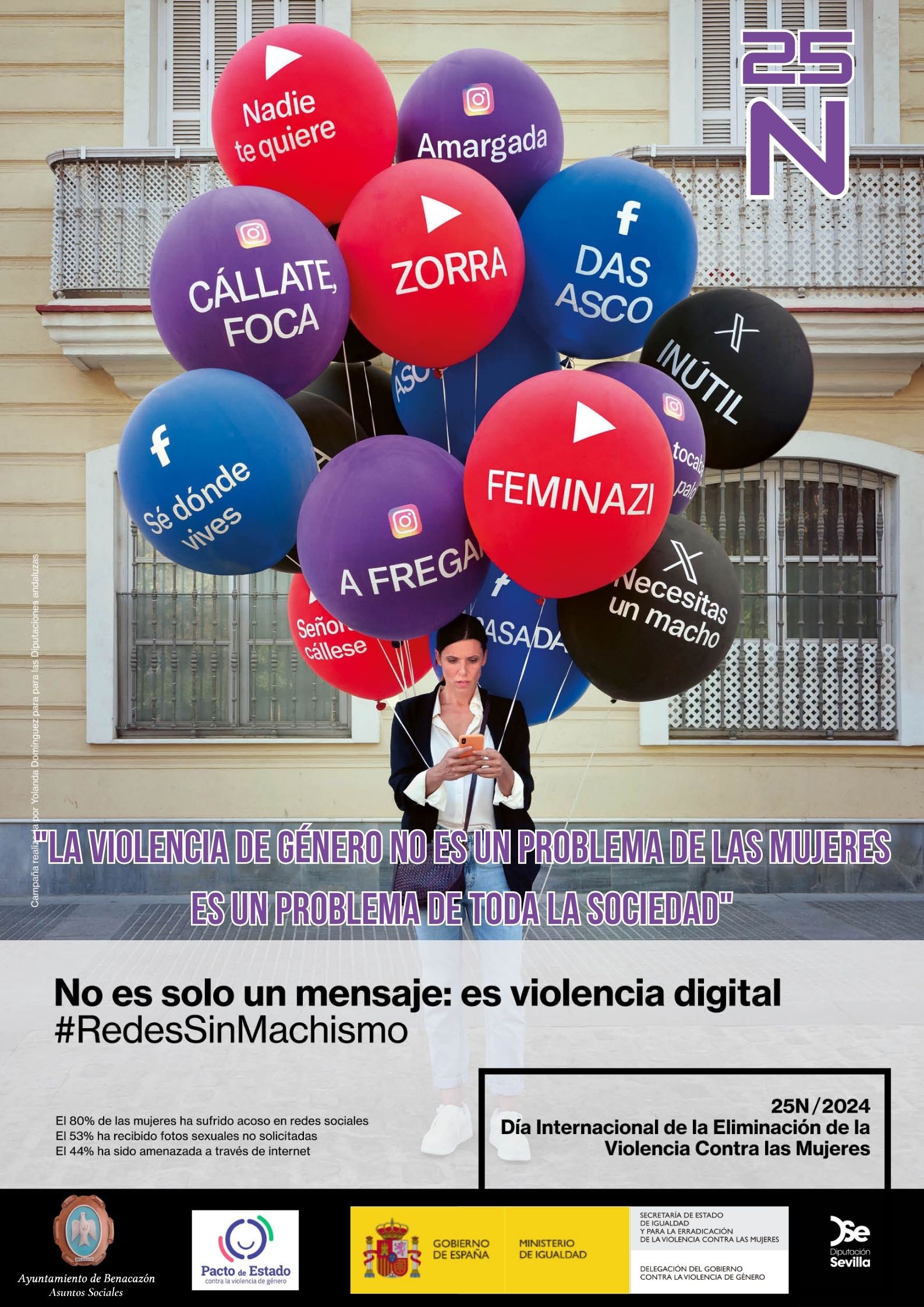 El Ayuntamiento de Benacazón informa de la Programación de Actividades organizadas por el Punto de Igualdad Municipal (PIM) de la Concejalía de Mujer e Igualdad, dentro de la Campaña "La violencia de género no es un problema de las mujeres "Es un problema de toda la sociedad", con motivo del "Día Internacional de la Eliminación de la Violencia Contra la Mujer" -que se conmemora cada 25N-. Actividades financiadas por el Ministerio de Igualdad, Secretaría de Estado de Igualdad, el Pacto Contra la Violencia de Género y Diputación de Sevilla.