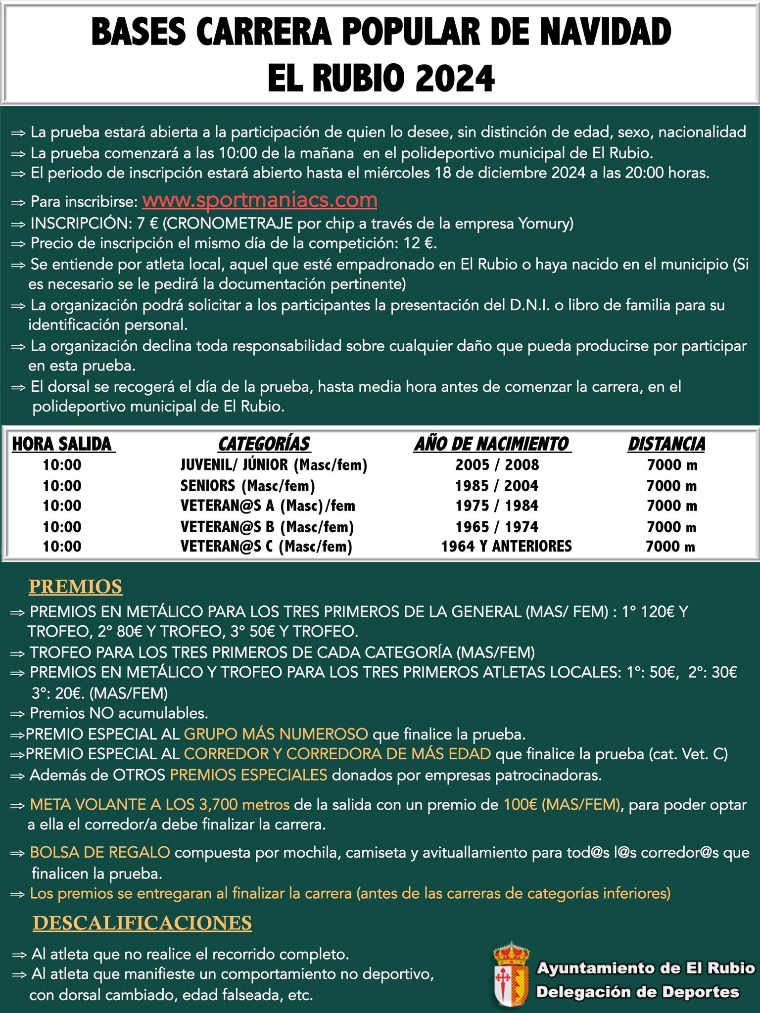 YA PUEDES INSCIBIRTE EN LA CARRERA POPULAR DE NAVIDAD EL RUBIO 2024