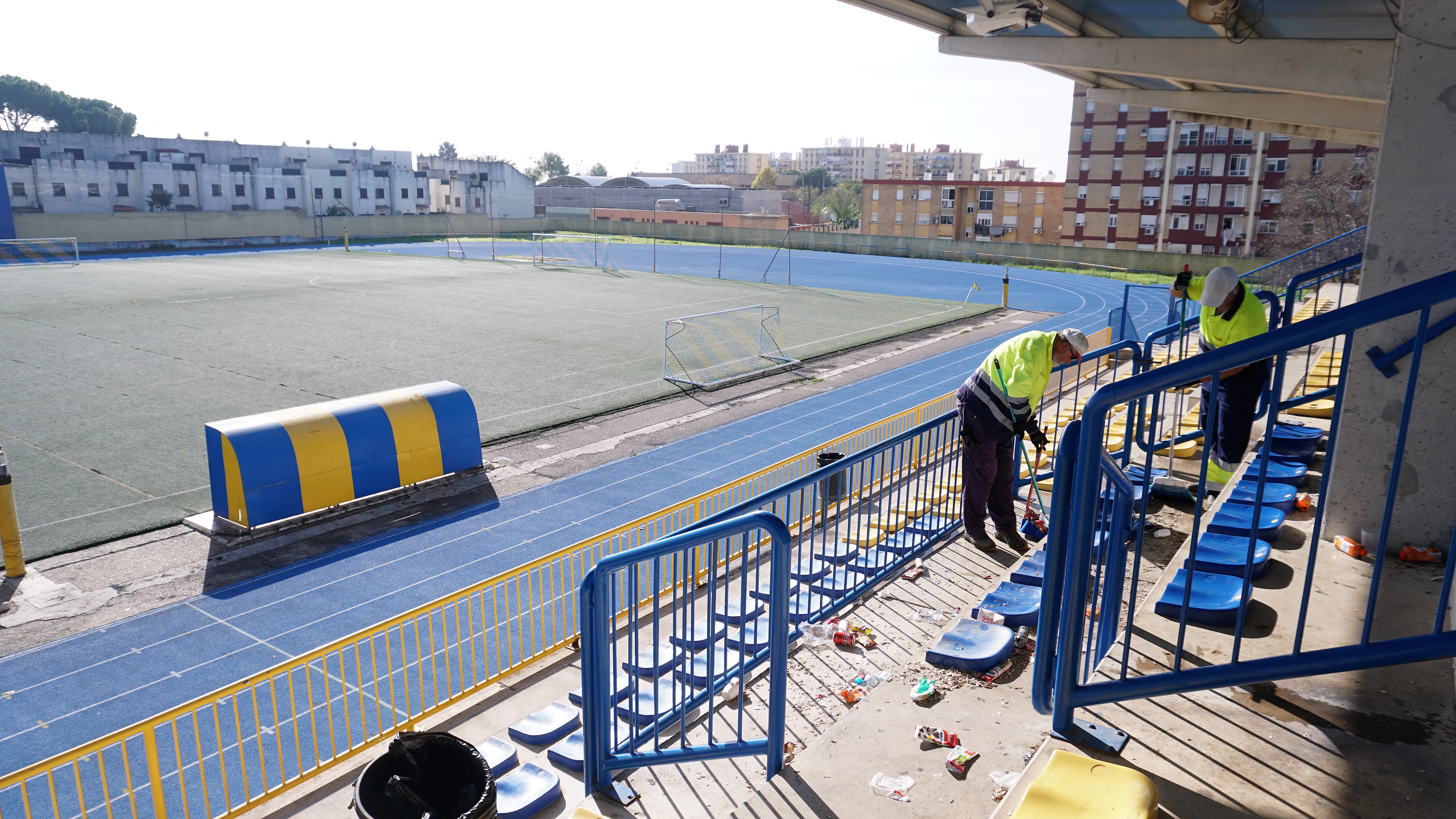 El Ayuntamiento realiza las labores de limpieza y mantenimiento, todos los lunes y viernes, en los estadios municipales de fútbol de Nueva Sevilla, en el Estadio Joaquín Rodríguez Morilla y, en el casco, en el Estadio Antonio Almendro.