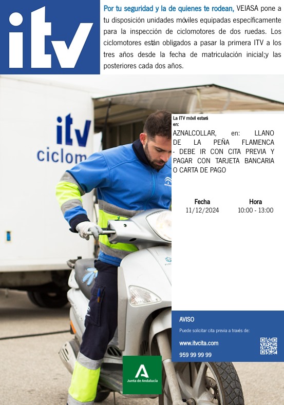 Imagen Imágenes Ubicación Categoría noticia Participacion Mostrar en el carrusel de la sección No Fecha Sáb, 02/11/2024 - 13:00 Más información http://www.aznalcollar.es/es/actualidad/noticias/ITV-EN-AZNALCOLLAR-Ciclomotore…