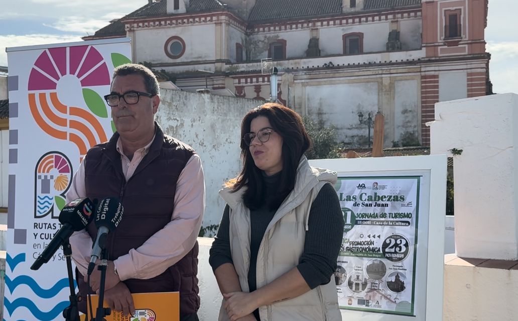 En la mañana de ayer, el presidente de ADELQUIVIR, Don José Ángel Martínez Fernández, y la concejala-delegada de Cultura, Patrimonio Histórico y Turismo del Ayuntamiento de Las Cabezas de San Juan, Doña África Castro Román, presentaron las Jornadas de Turismo de Las Cabezas de San Juan junto a la Ruta Turística y de Promoción de la Gastronomía Local, en rueda de prensa.