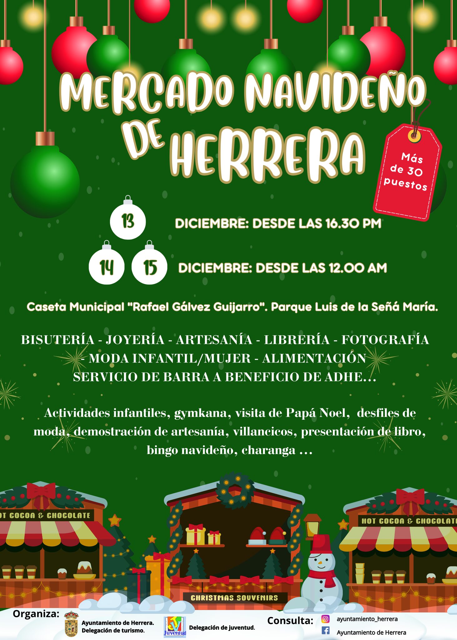 La Delegación de Turismo y la Delegación de Juventud del Ayuntamiento de Herrera organizan un Mercado Navideño los días 13, 14 y 15 de diciembre.