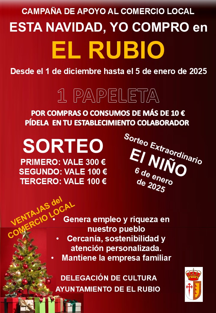 Hasta el 5 de enero de 2025 se desarrolla la campaña de apoyo al comercio local "ESTA NAVIDAD, YO COMPRO EN EL RUBIO"