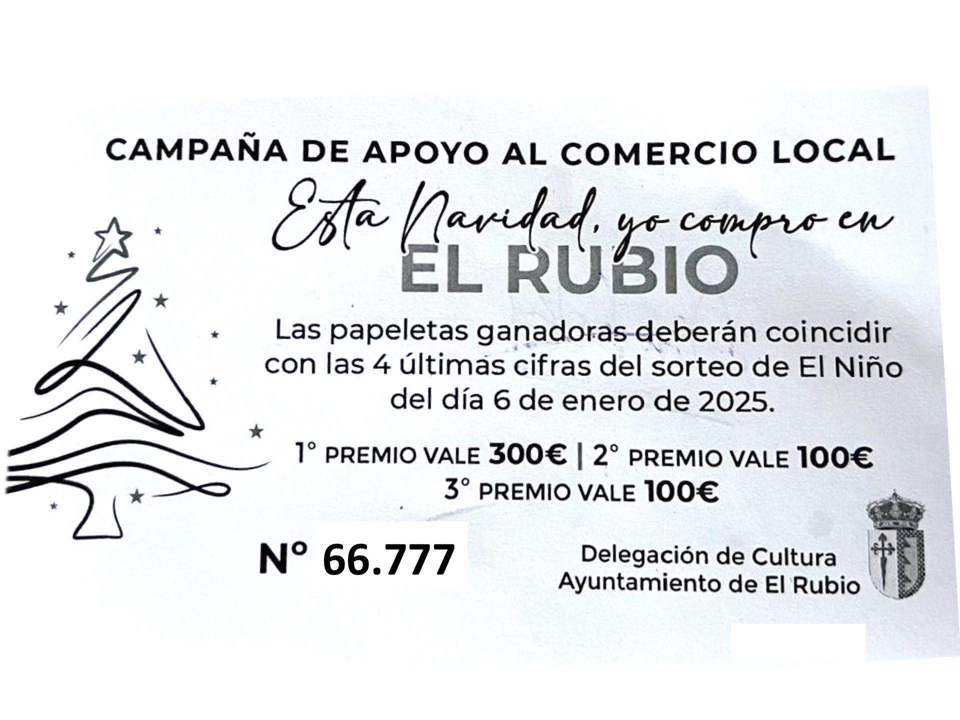 NÚMEROS PREMIADOS EN LA CAMPAÑA DE APOYO AL COMERCIO LOCAL "ESTA NAVIDAD YO COMPRO EN EL RUBIO"