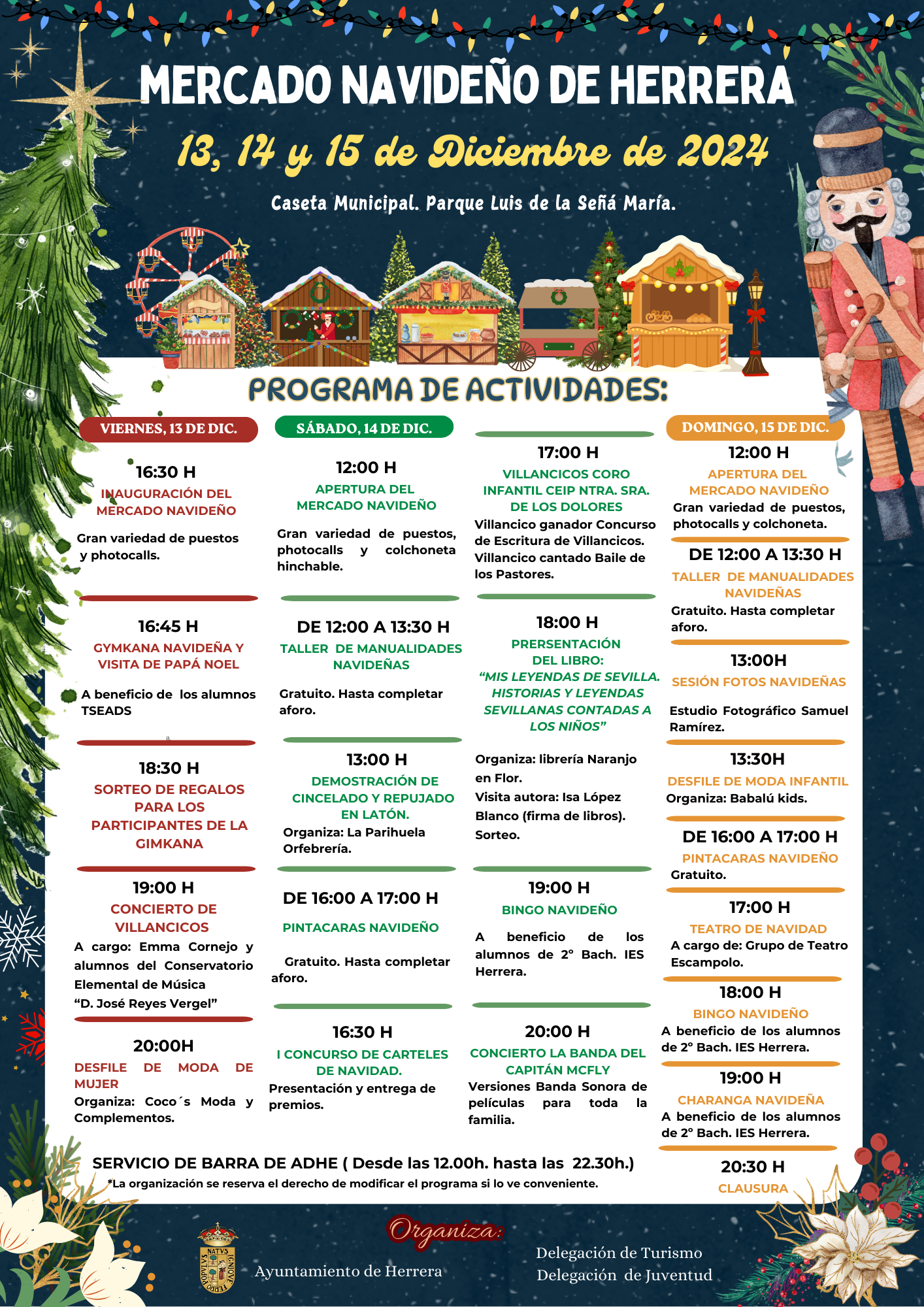La Delegación de Turismo y la Delegación de Juventud del Ayuntamiento de Herrera organizan un Mercado Navideño los días 13, 14 y 15 de diciembre.