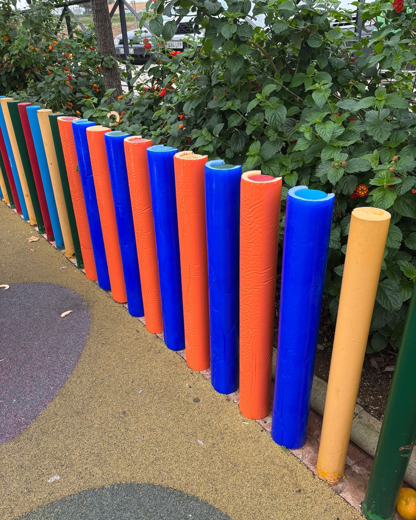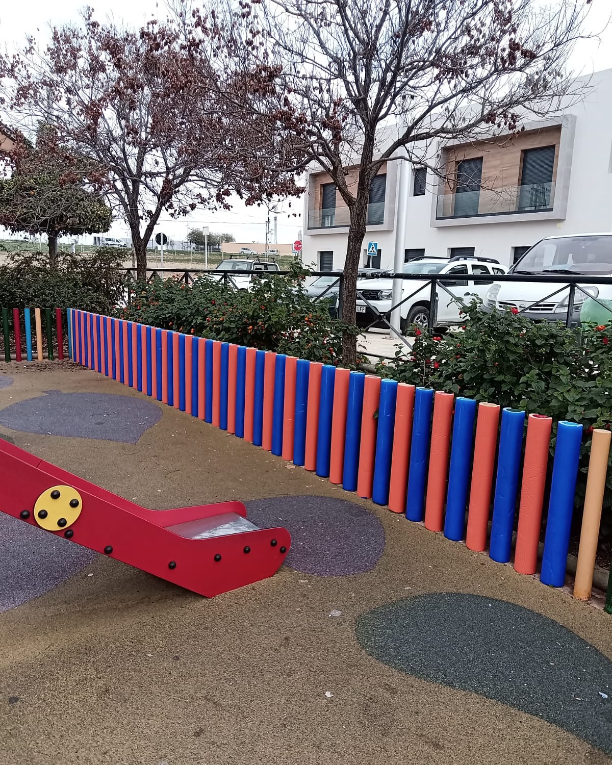 El área infantil de la Plaza Alcalde Manuel Vázquez cuenta con nuevos protectores circulares. En concreto, se ha implementado el modelo OK03, caracterizado por ser reciclable, resistente a la radiación ultravioleta (UVA) y conforme a la normativa EN71-3. Este modelo cuenta con un recubrimiento exterior especialmente diseñado para la protección de estructuras en parques infantiles, destacándose por su alta capacidad de absorción de impactos.