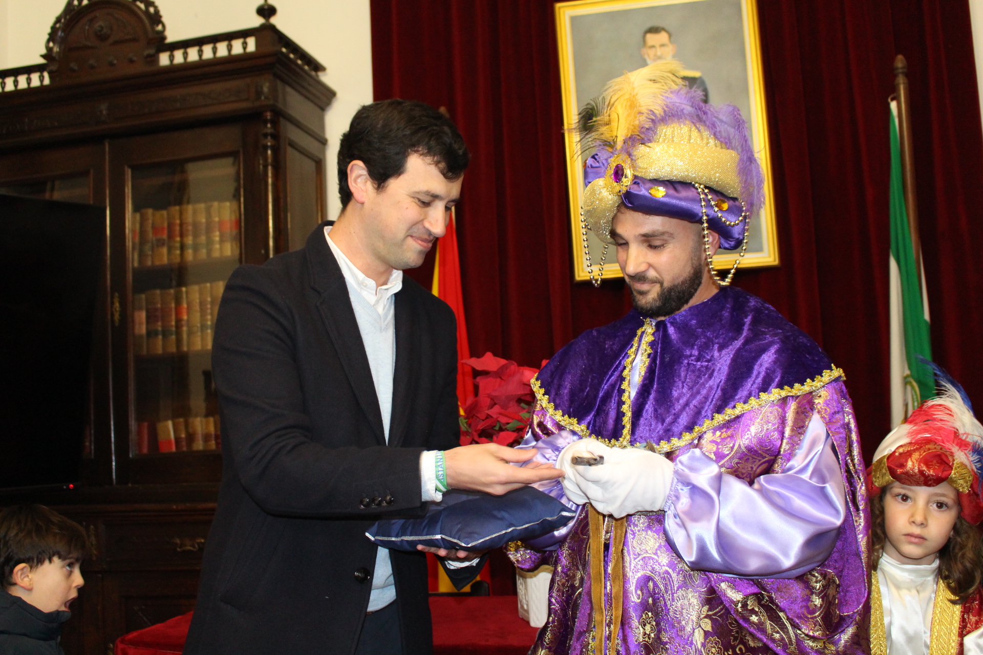 El emisario real recibía, de manos del alcalde, Rubén Rivera, en un abarrotado Salón de Plenos, las llaves de la villa para que sus Majestades entren el 5 de enero por las calles de Constantina y repartan regalos a los más pequeños y también salud, trabajo y bienestar entre todos los vecinos. Tras el acto, la Heraldo y su séquito avanzó por diferentes calles del municipio sembrando sonrisas y diversión animados por la Charanga "Los Pingüinos".
